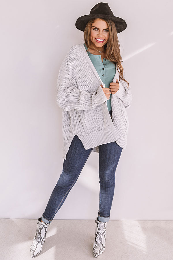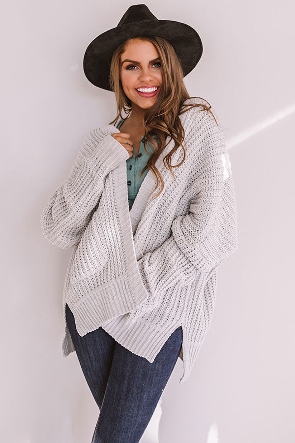 Cozy And Chill Knit Cardigan In Light Grey
