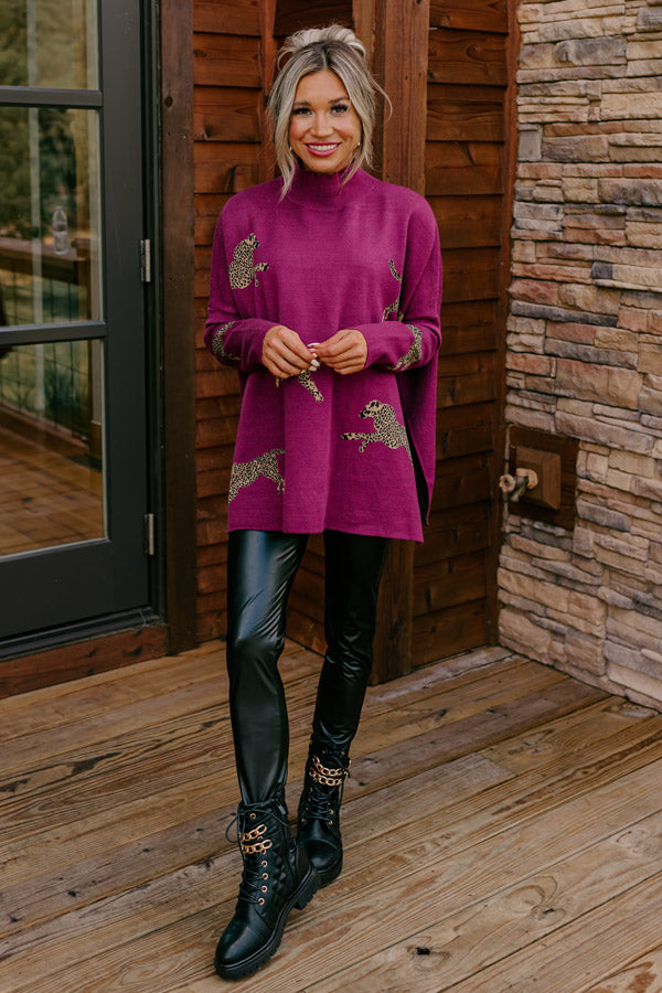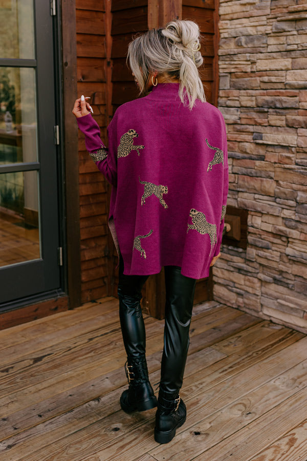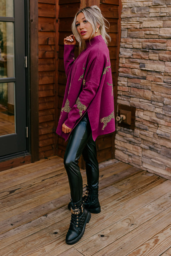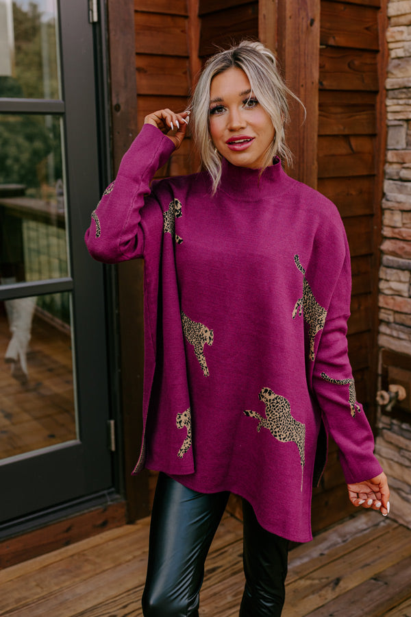 Cozy And Kind Cheetah Sweater In Royal Plum