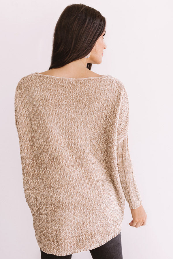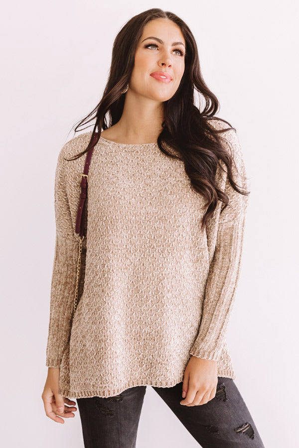 Cozy By The Fire Chenille Sweater in Iced Latte