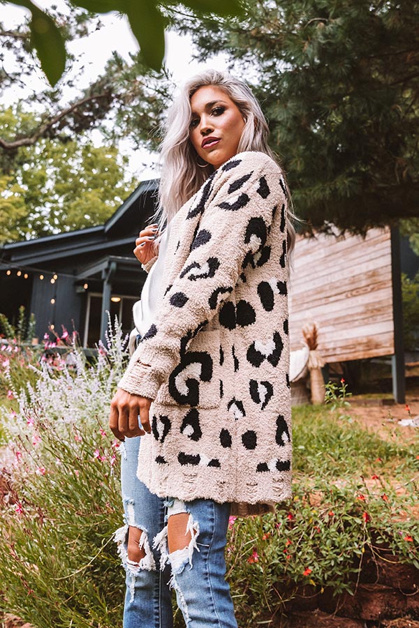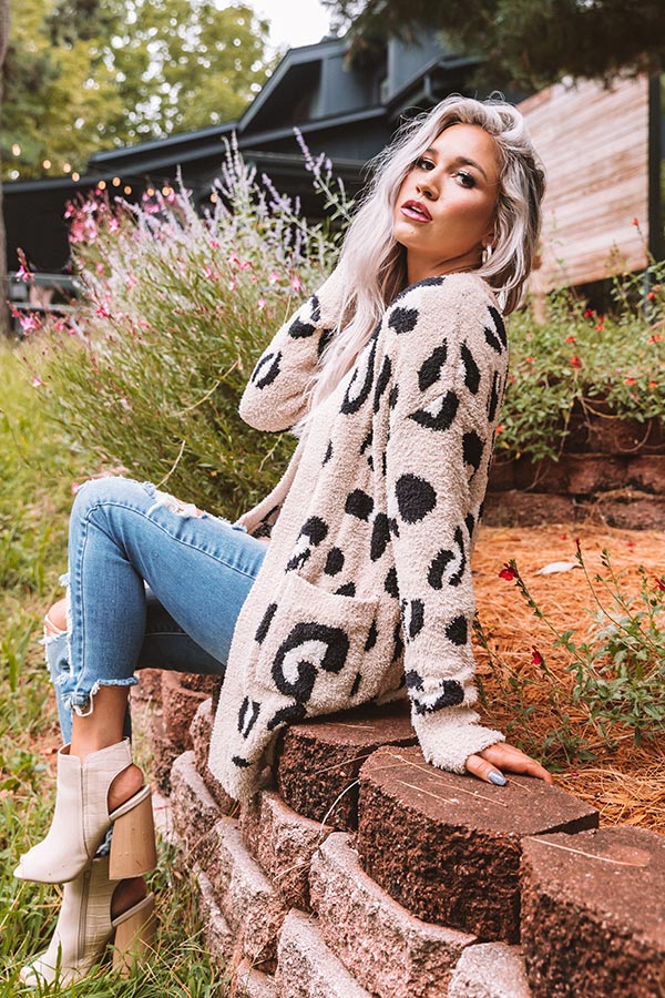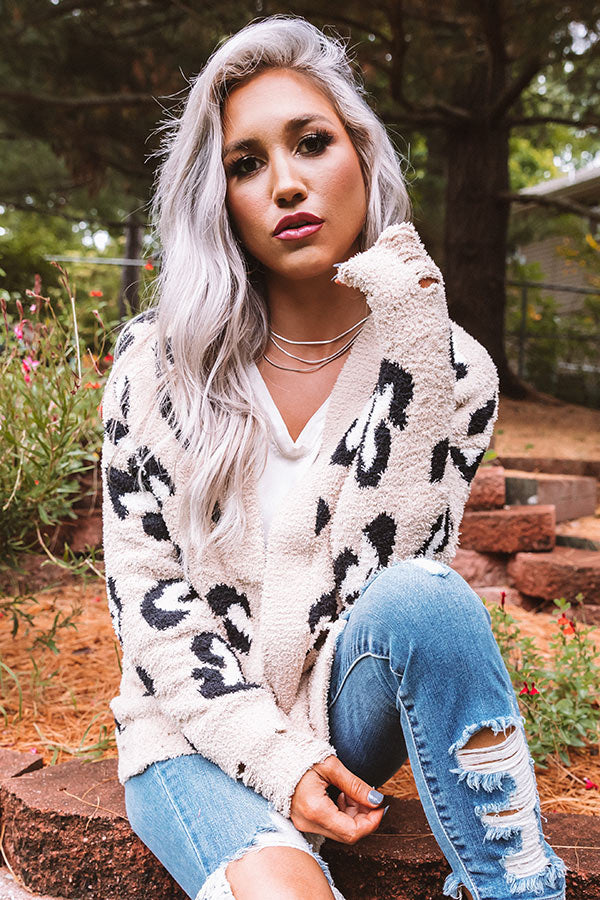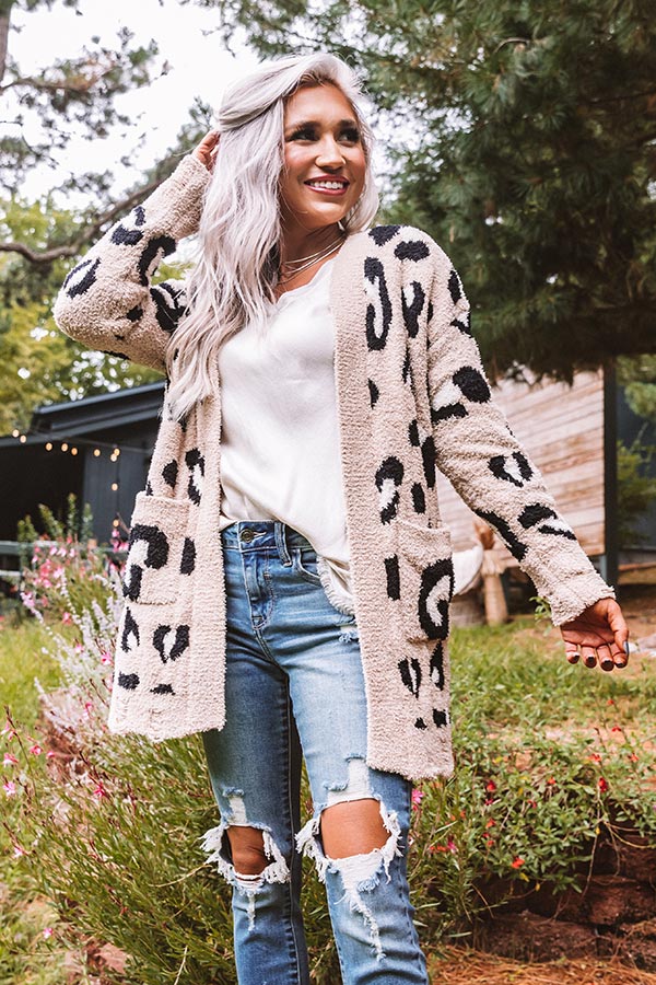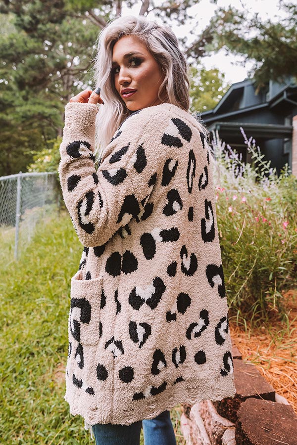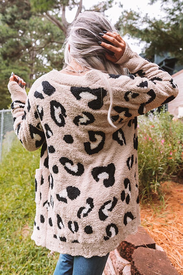 Cozy By The Fireplace Leopard Cardigan In Iced Latte