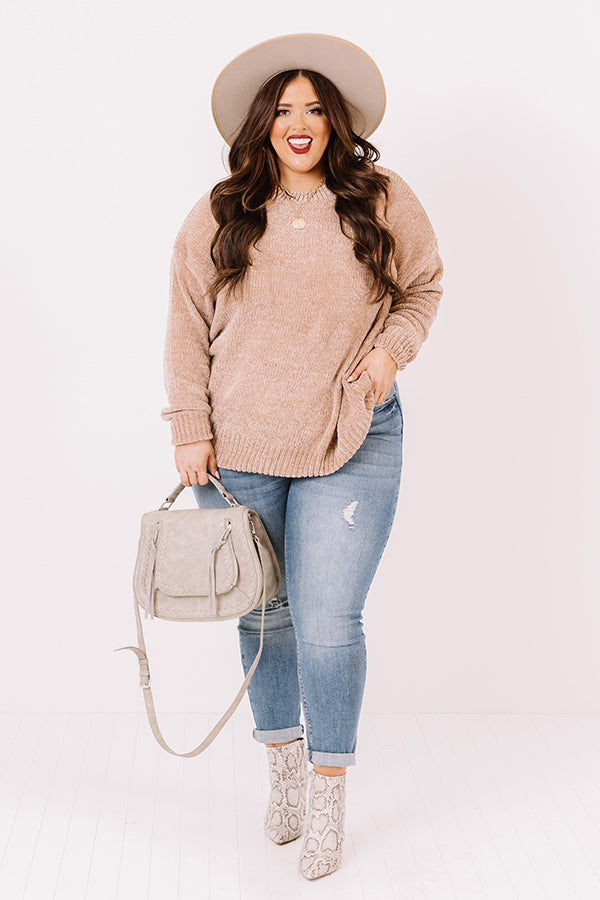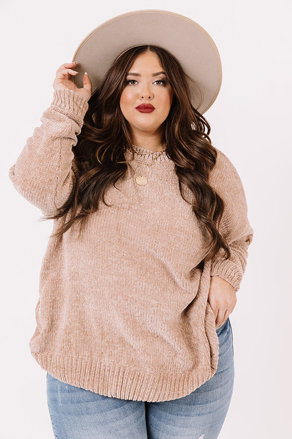Cozy Celebration Chenille Sweater In Iced Latte Curves