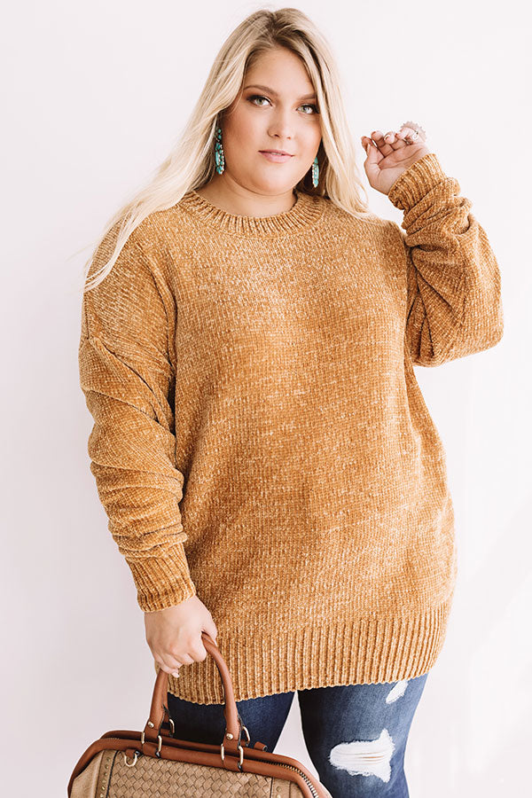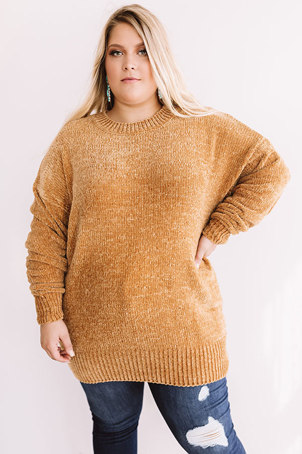 Cozy Celebration Chenille Sweater In Mustard Curves