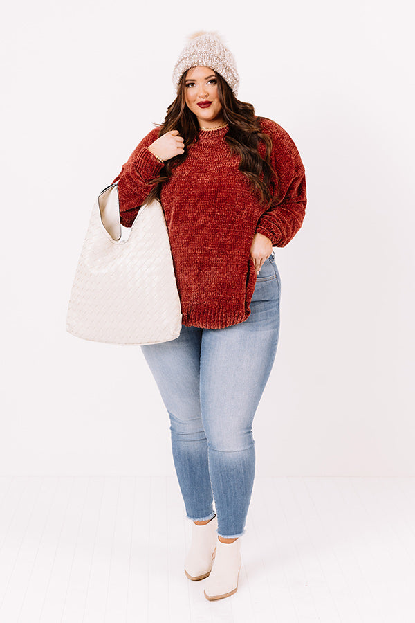 Cozy Celebration Chenille Sweater In Rustic Rose Curves