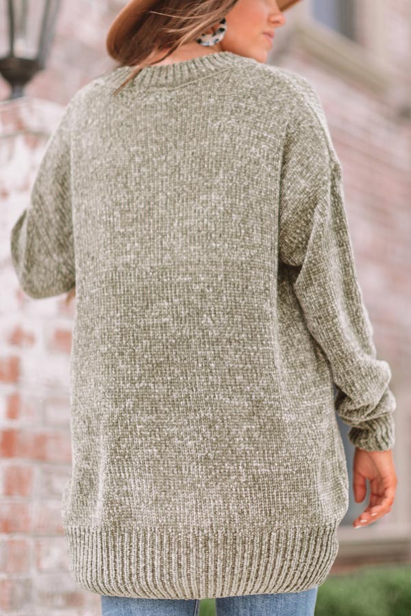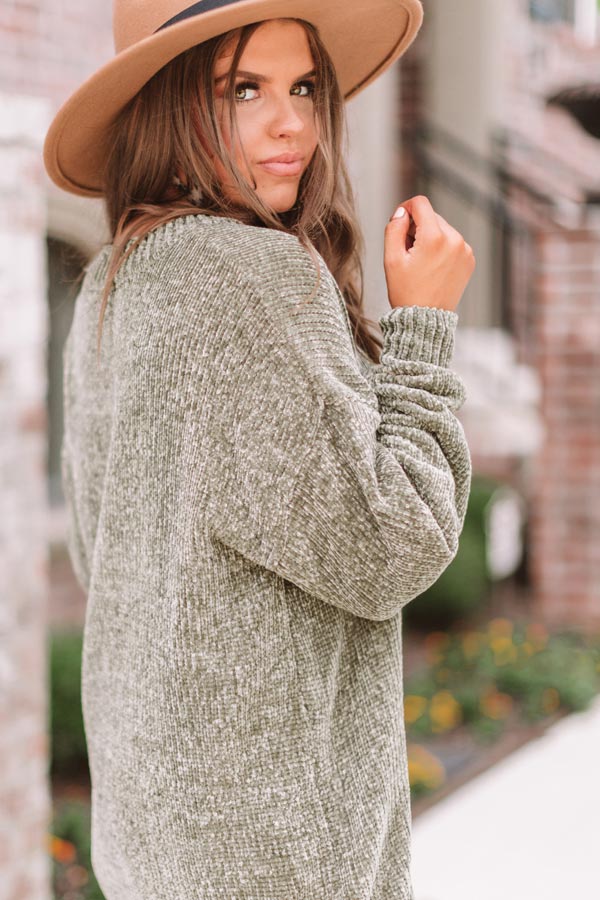 Your fall style will be throwing a "cozy celebration" when you wear this sage sweater featuring an ultra soft chenille texture, a wide high rounded neckline, long loose sleeves with fitted cuffs, and a relaxed silhouette that falls into a straight tunic length ribbed hemline! This versatile piece can be styled with some distressed ankle skinnies, leopard heels, a black tote, and a neutral faux suede hat, or you can pair it with some white flares, "The Seraphina Faux Leather Wedge in Brown," and our "All Caught Up Headband in Ivory!" Measurements
