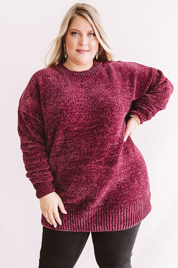 Cozy Celebration Chenille Sweater In Windsor Wine Curves