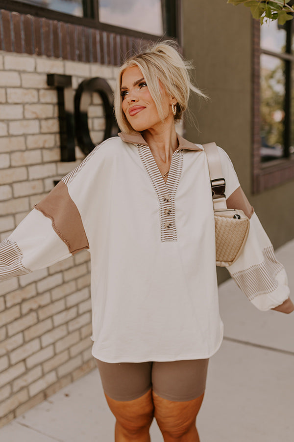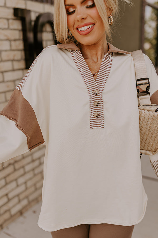 - Enjoy a day on the town in this cute top! A relaxed fit and trendy accents give it cool, laid-back vibes. Whether you are road tripping with friends, or simply grabbing a morning coffee, this piece is sure to keep you cozy and stylish!