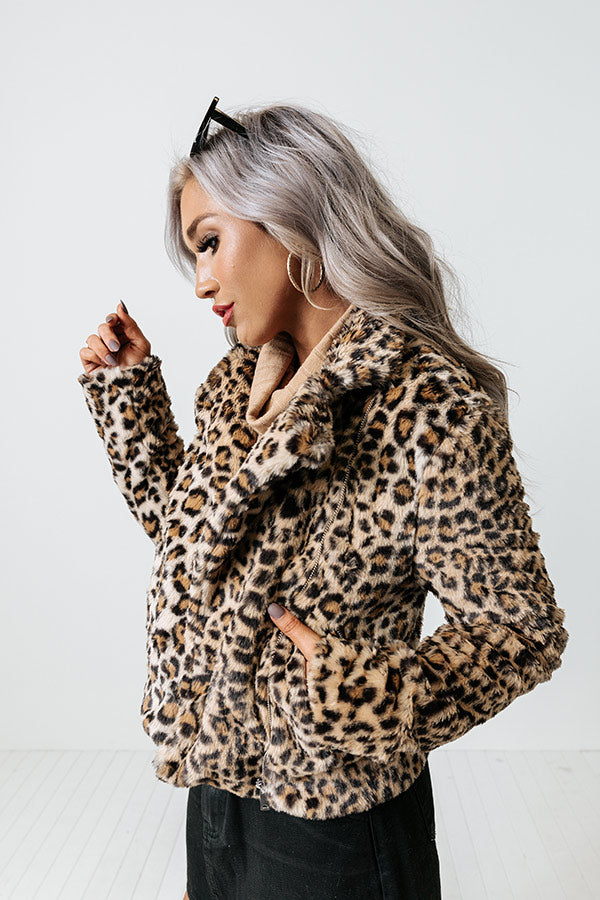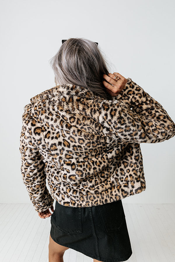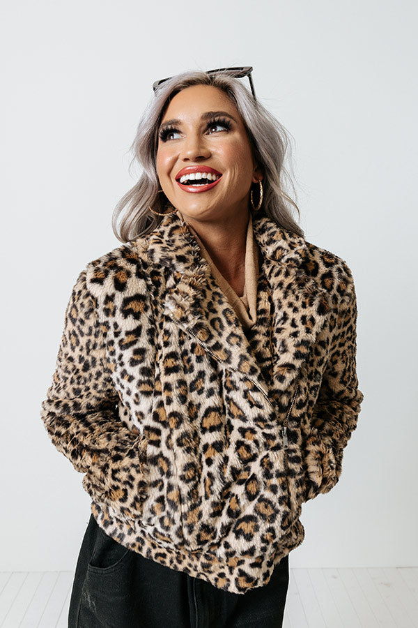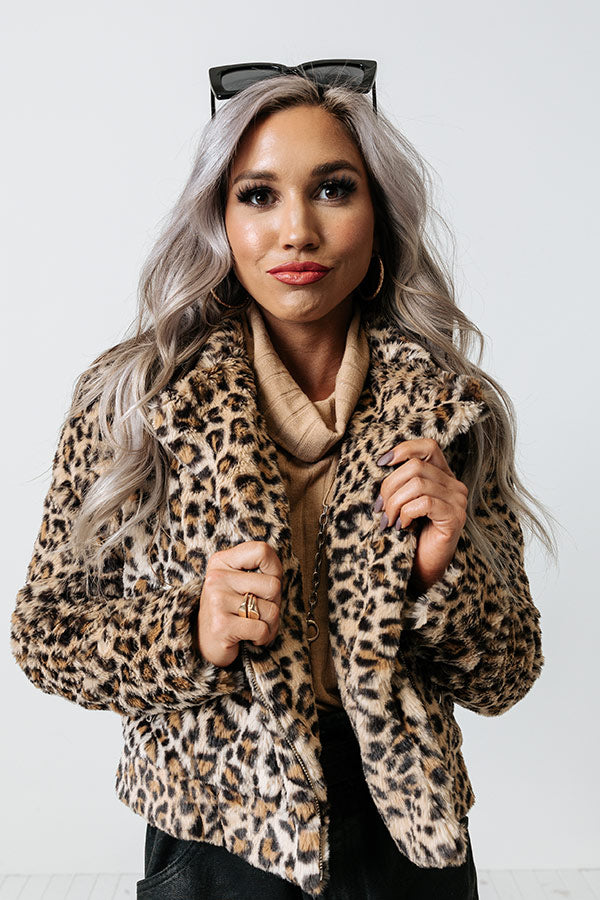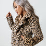 Cozy up in this stunning jacket featuring ultra soft and plush material patterned with a bold black and brown leopard print, long loose sleeves, a collared neckline, hidden side pockets, and a flattering silhouette that ends in a straight hemline! Measurements
