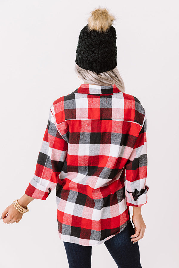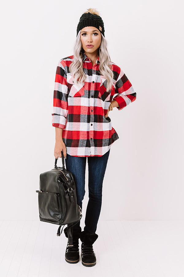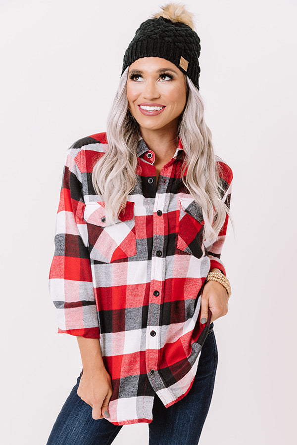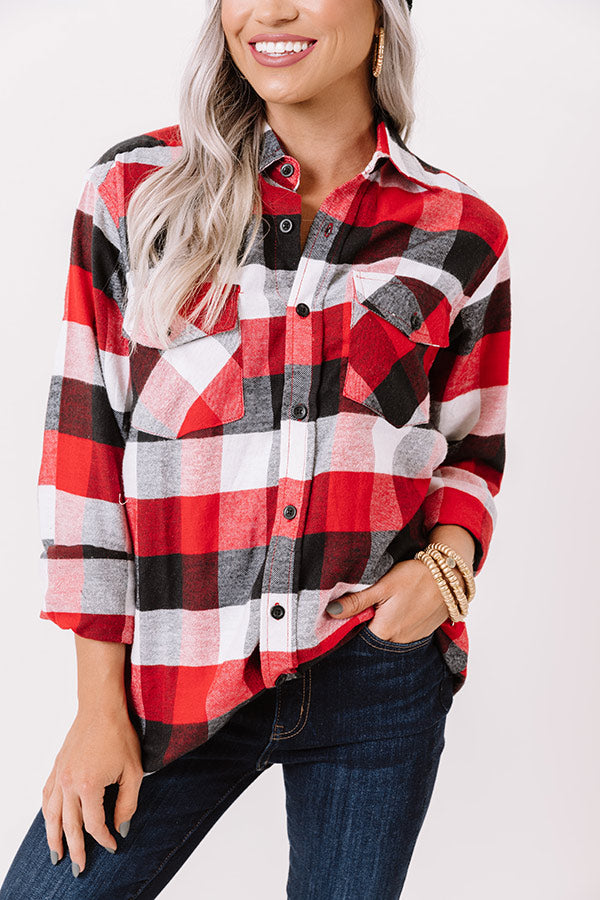 This classic unisex fireside flannel is the perfect addition to your fall wardrobe! It will keep you "cozy for days" with its red, white, and black checked pattern, long loose sleeves with button closure cuffs that can be rolled, collared neckline, accent chest pockets, a rounded hemline, and a front button up bodice that can be worn open or closed! Measurements