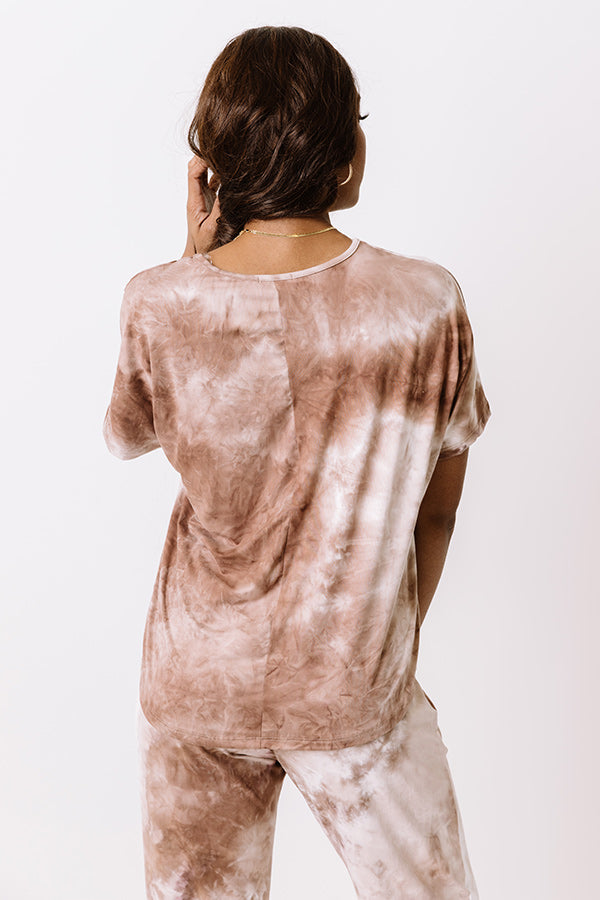 There is no better piece to wear for a "cozy morning" than this adorable top featuring ultra soft lightweight material patterned with mocha hued tie dye, a wide v-cut neckline that can be worn off one shoulder, short loose sleeves, and a relaxed silhouette that falls into a rounded hemline! Style with our matching "Cozy Mornings Tie Dye Joggers in Mocha" for the ultimate cozy two-piece lounge look!