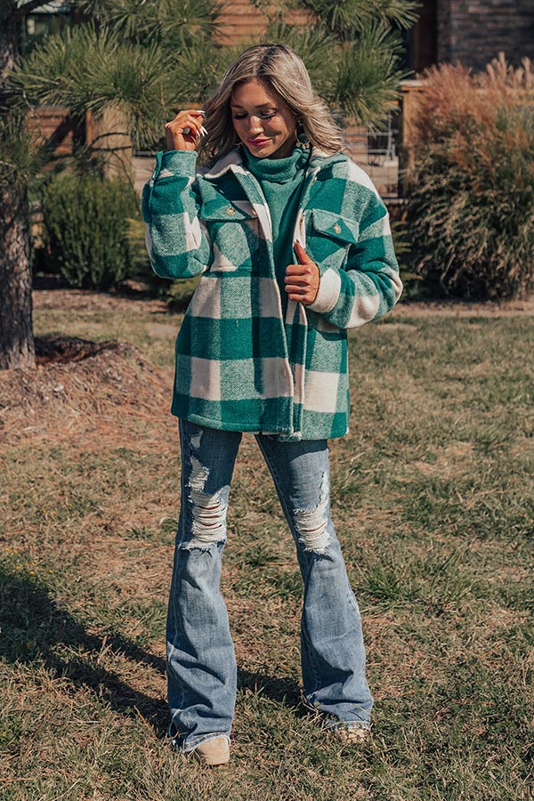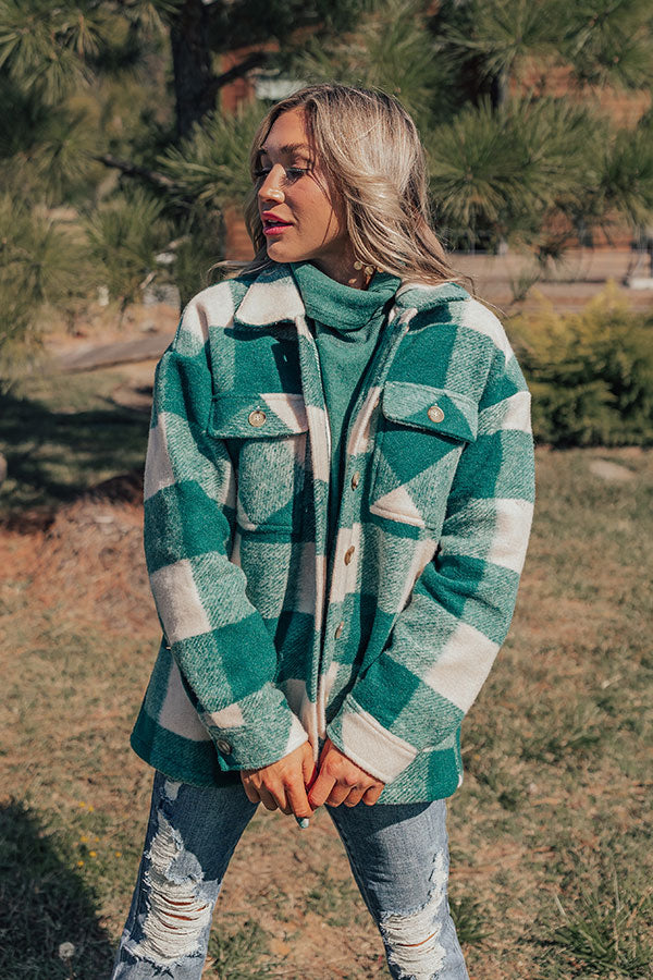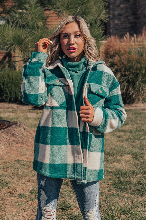 Cozy Paradise Plaid Jacket in Hunter Green