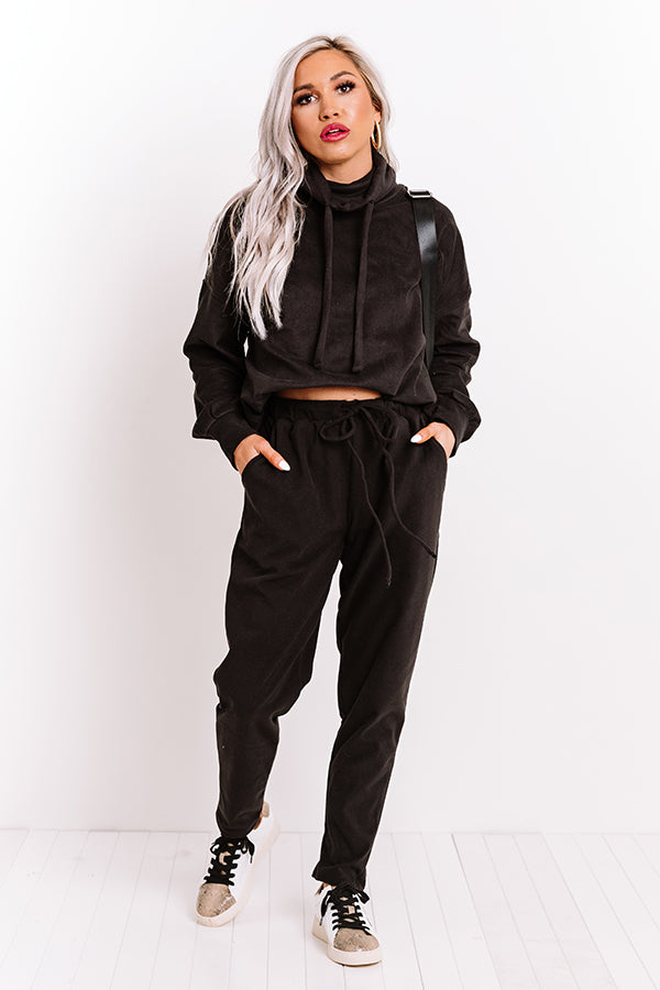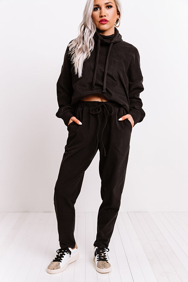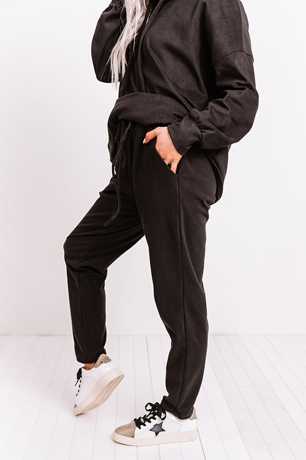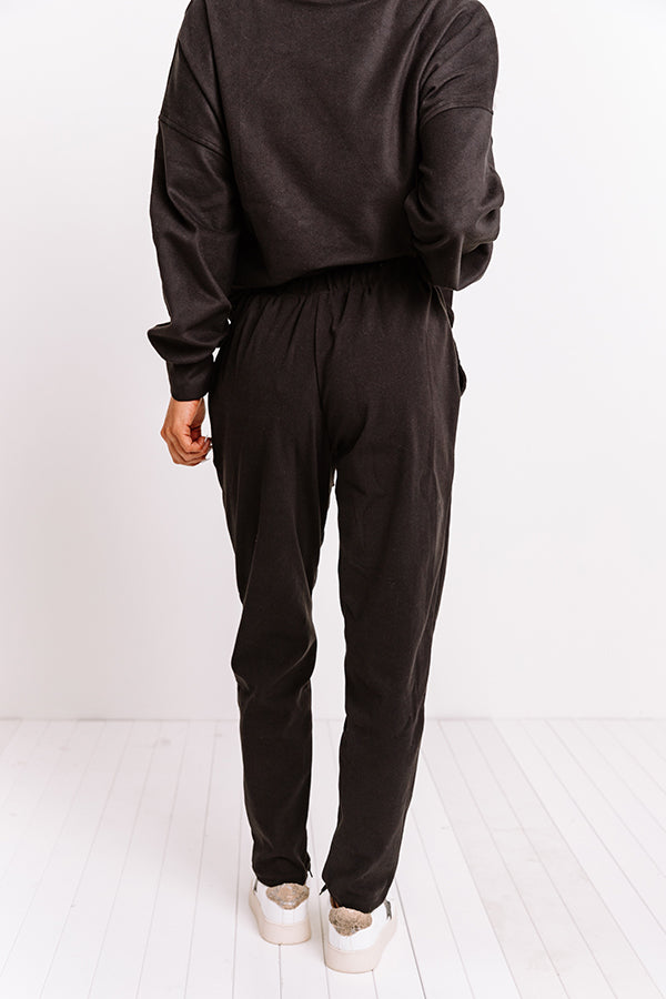 These cute black joggers are sure to add a cozy perk to your day with their ultra soft lightweight material, wide elastic waistline with a tie closure, accent side pockets, and a relaxed pants silhouette that tapers into fitted ankle-length hemlines!