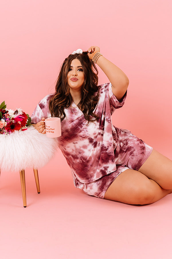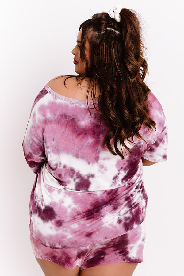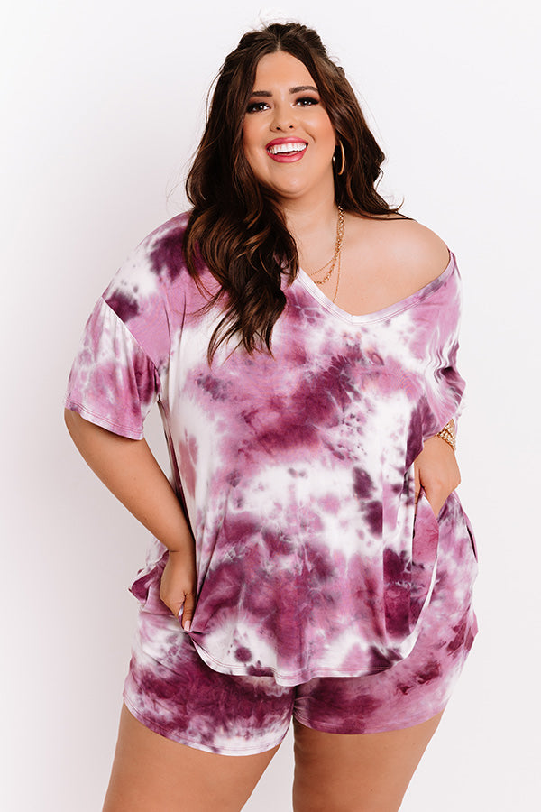 Plus Size - Our adorable 'Cozy Snapshot' shift tee is the upgrade your lounge wear has been asking for with its ultra soft lightweight material patterned with purple hued tie dye, v-cut neckline, short loose sleeves, and relaxed silhouette that falls into a rounded hemline! Measurements