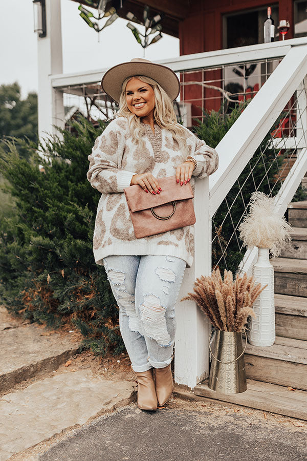 Cozy Trail Knit Sweater In Ivory Curves