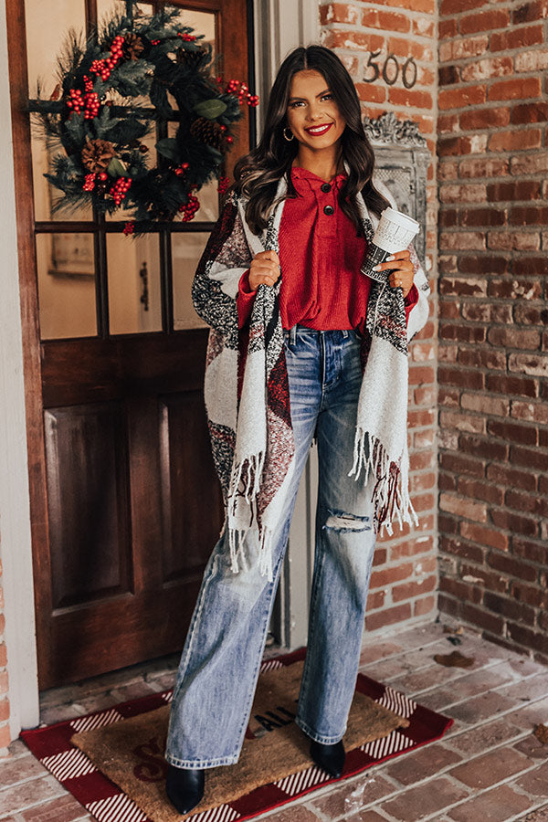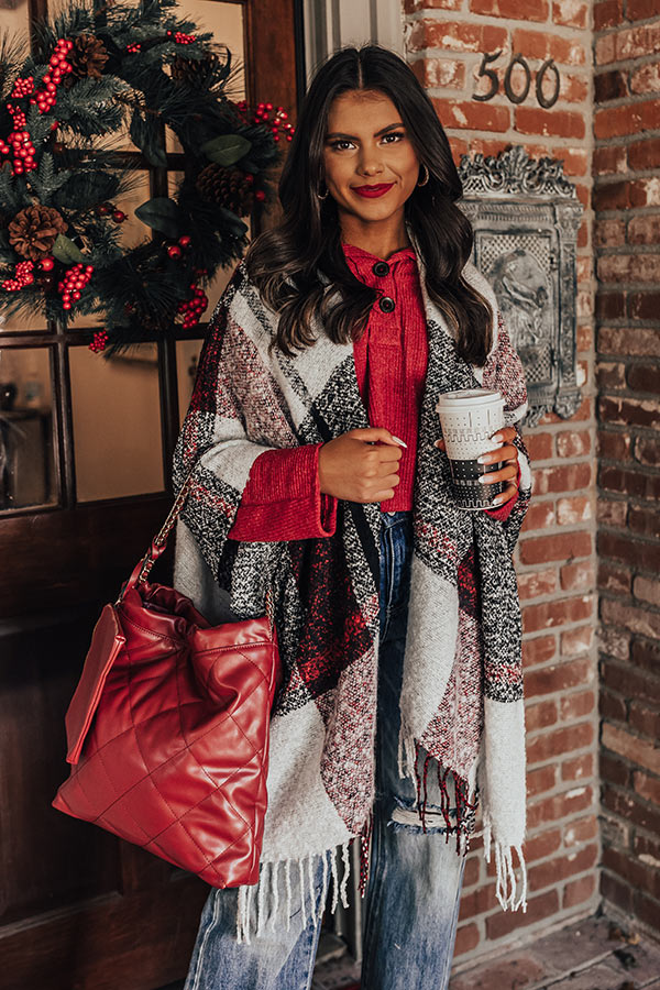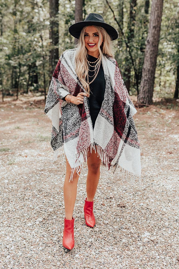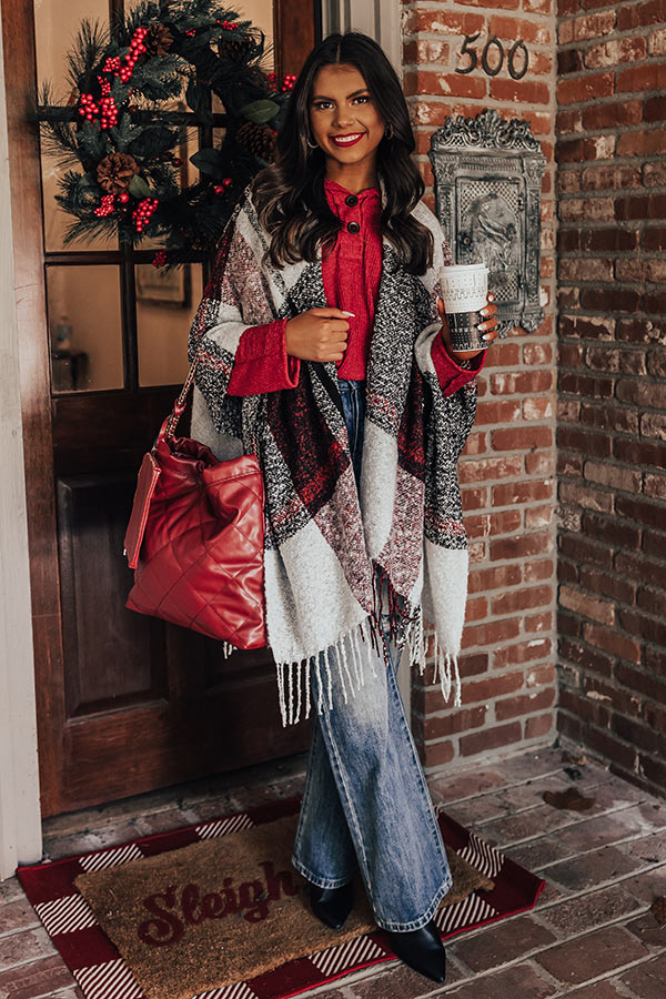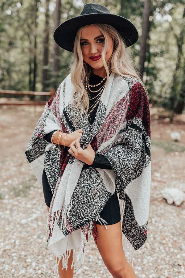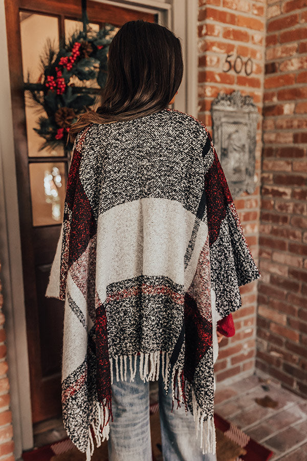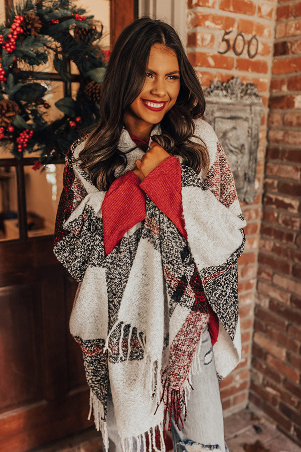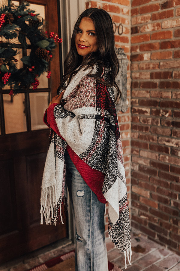 Cozy Up Fireside Plaid Poncho In Red