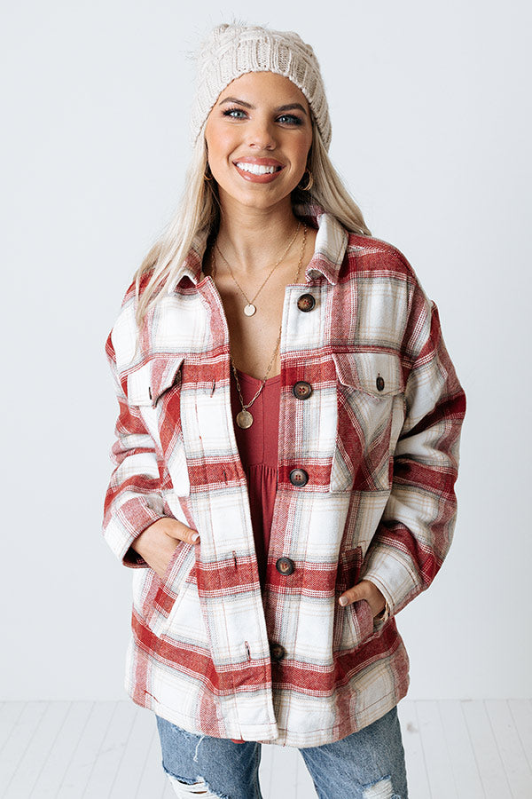 Cozy Up In Carolina Plaid Jacket in Aurora Red
