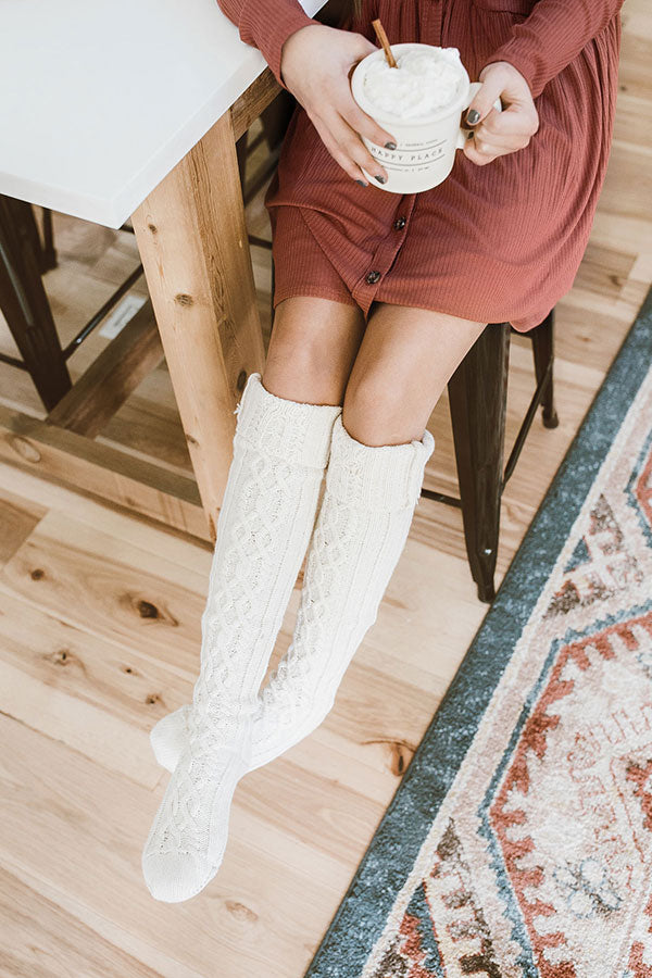 Cozy Vibes Thigh High Cable Knit Socks in Ivory