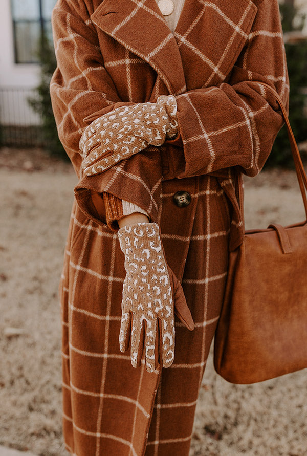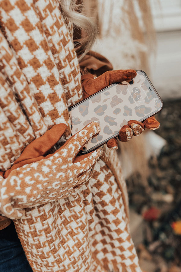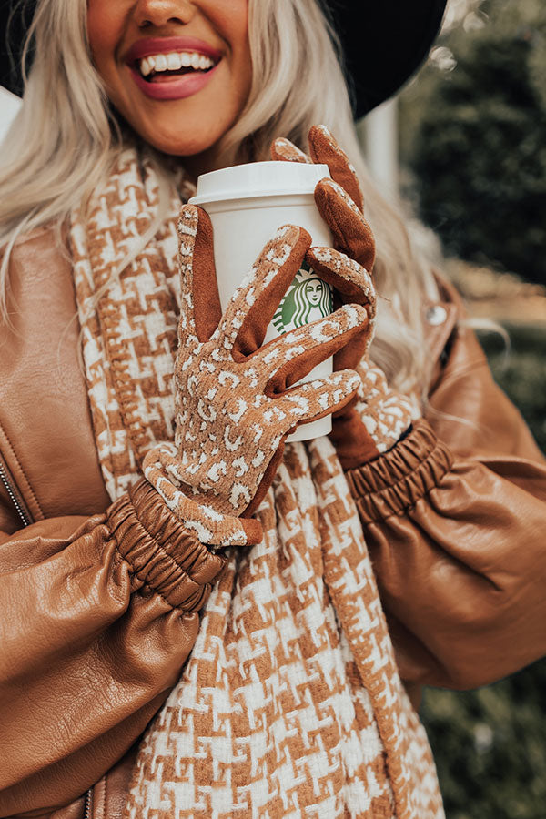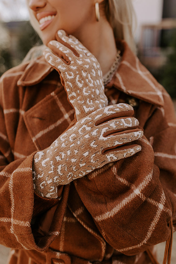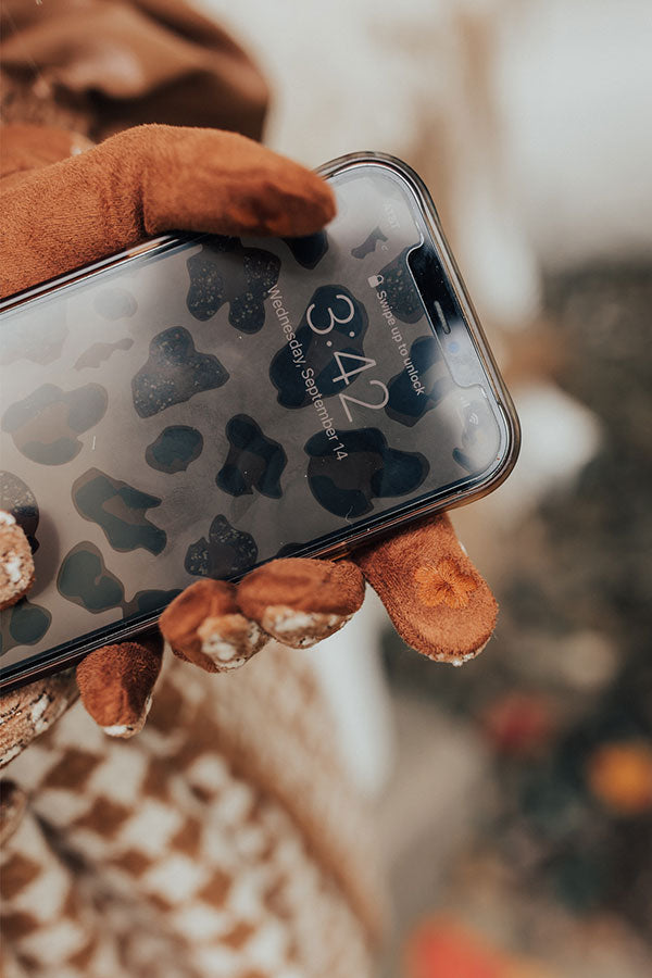 Keep warm and stay stylish during the 'Cozy Weather' with our new tech gloves featuring ultra soft faux suede and chenille-like material, patterned with cream leopard print!