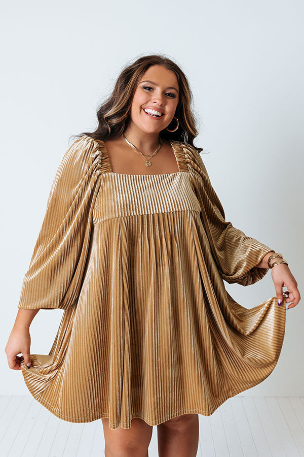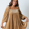 Cranberry Spritz Velvet Babydoll Dress in Khaki Curves