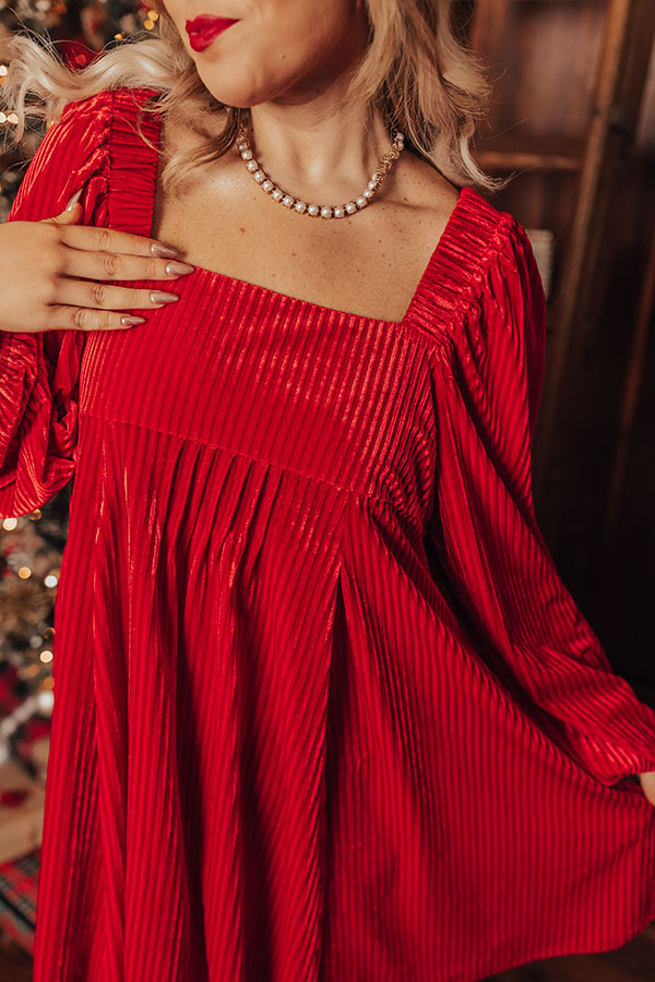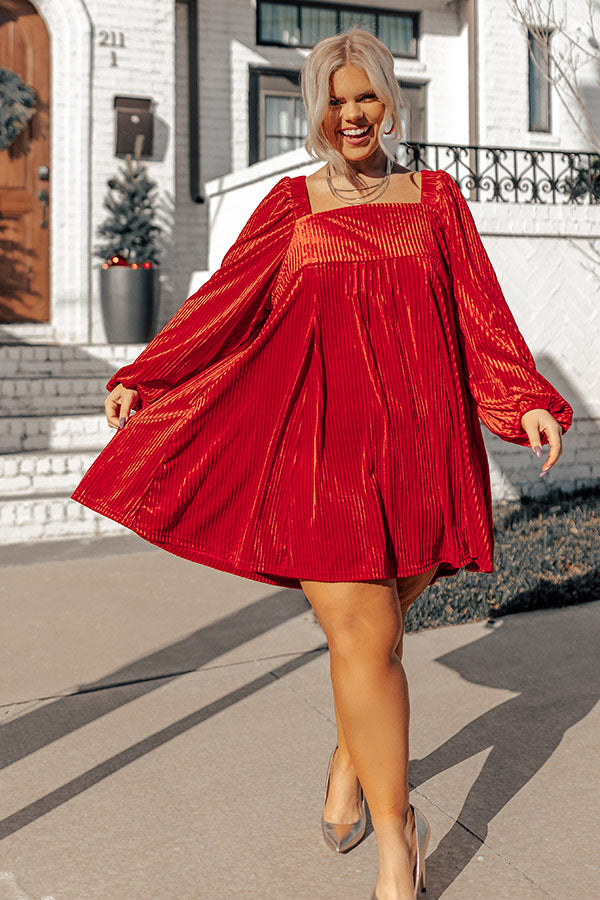 Cranberry Spritz Velvet Babydoll Dress in Red Curves