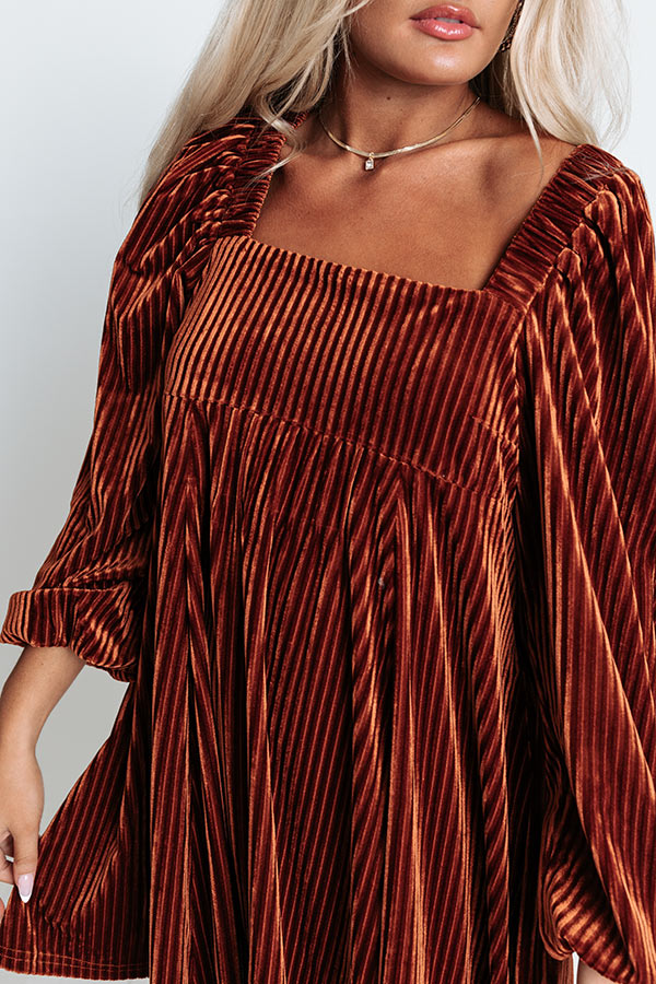 Cranberry Spritz Velvet Babydoll Dress in Rust