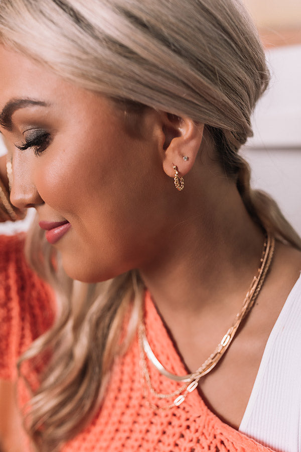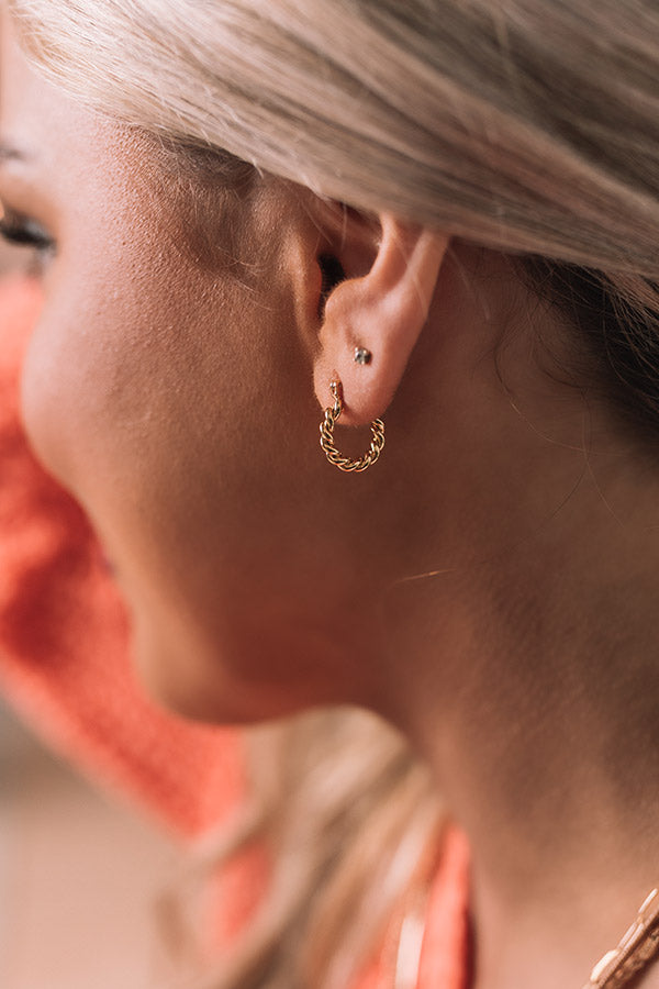 Upgrade your everyday jewelry with our dainty 'Crash My Party' earrings featuring small gold twist hoops!