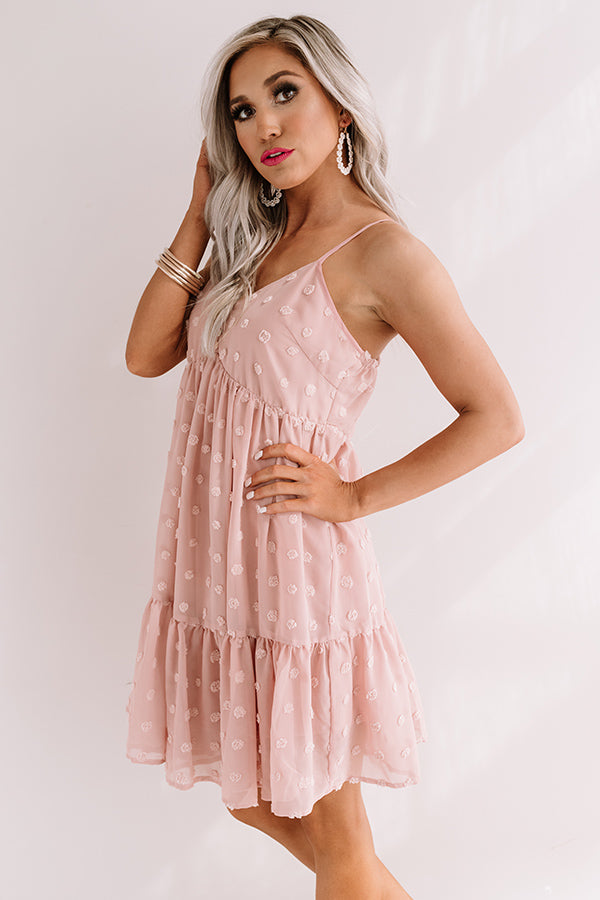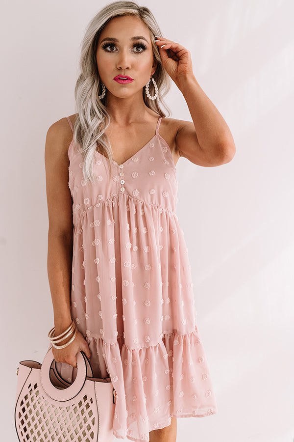 All eyes are sure to be on you when you wear our adorable blush colored "Craving Pina Coladas Shift Dress" featuring lightweight breezy material patterned with subtle polka dot texturing, a button up bodice with a v-cut neckline, adjustable spaghetti straps with an elastic back, and an ultra relaxed silhouette that falls into a peplum bottom with an uneven mid-thigh length hemline! We have styled this cutie with neutral heels and a pink tote, but you can also wear it with "The Underwood Faux Leather Wedge in Brown" and our "Upstate Adventures Hat in Brown!" Measurements