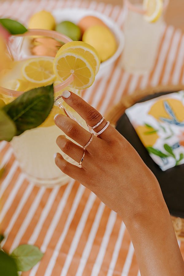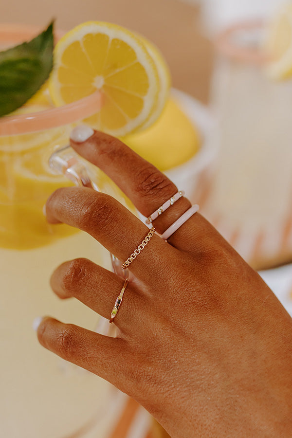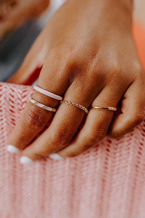 Create your dream jewelry look with this adorable ring set featuring four gold and baby pink bands! Size 7.