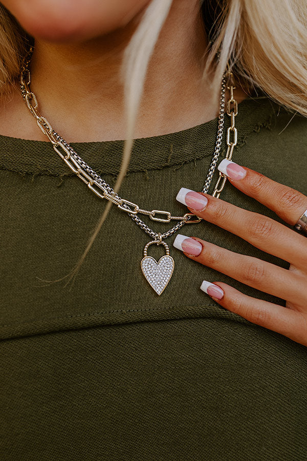 A texture gold and silver colored connected chains with a dangling CZ heart pendant