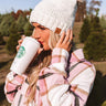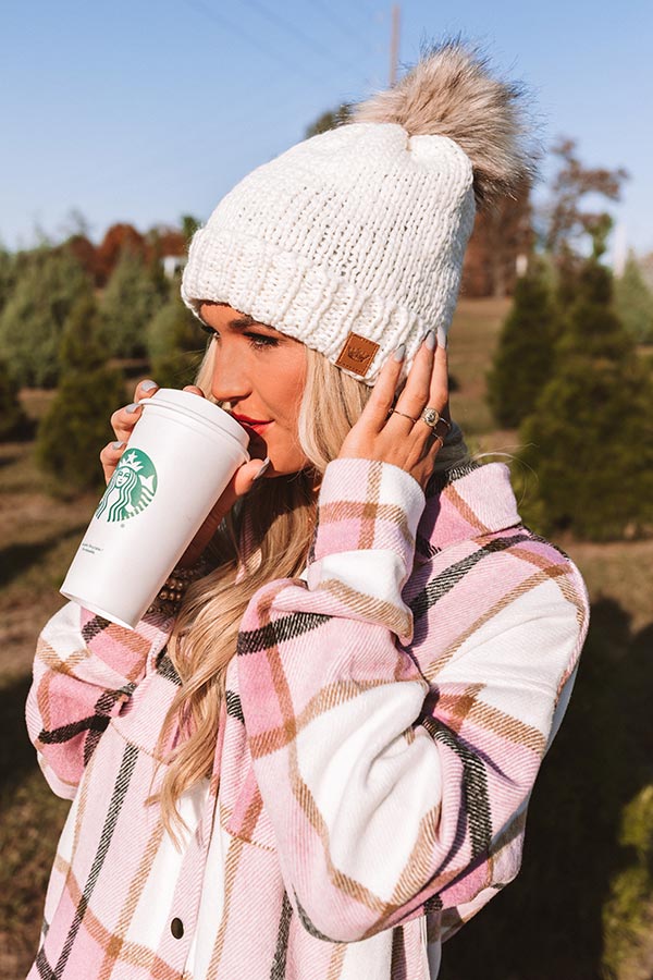 Top off your winter style with our darling cream colored 'Crescent Kisses' beanie featuring soft lightweight tight knit material with ultra soft fleece lining, a rolled silhouette, and an accent faux fur pom!