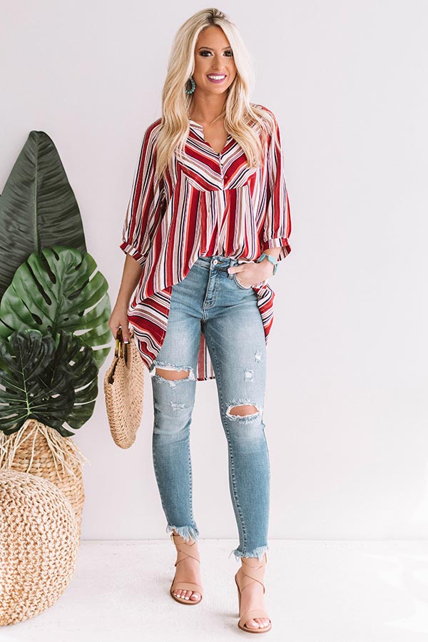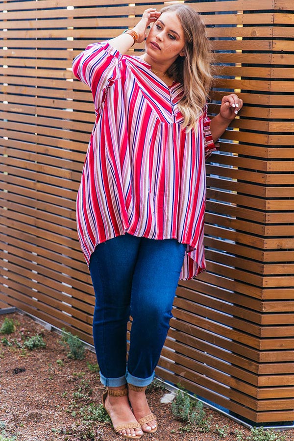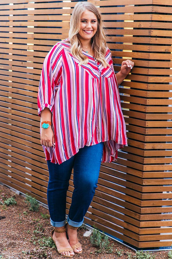 Head to Calabasas for brunch & a little bit of shopping in the "Cruising In Calabasas Striped Shift Tunic!" This wear anywhere tunic has quarter length sleeves, a button down neckline & a relaxed shift bodice with a high-low hem. Add a pop of color to your look with some great turquoise accessories, for a "casual cute" boho inspired look that can carry you from season to season!