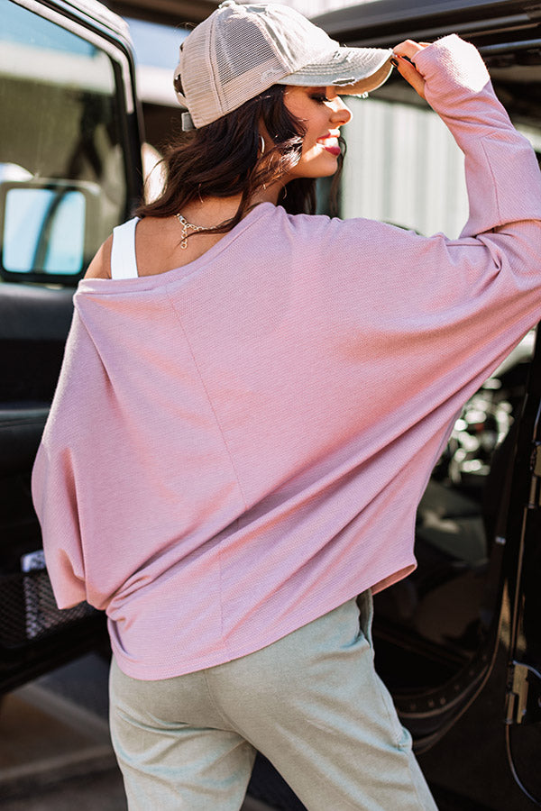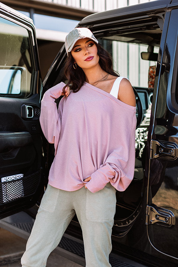 You will undoubtedly be crushing it when you arrive in this casual pink athleisure top featuring soft lightweight tight knit material, a wide rounded neckline that can be worn off one shoulder, long loose sleeves with thumb holes, and an ultra slouched silhouette that falls into a straight hemline! Measurements