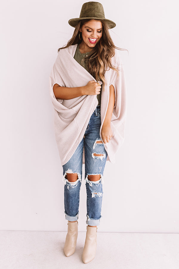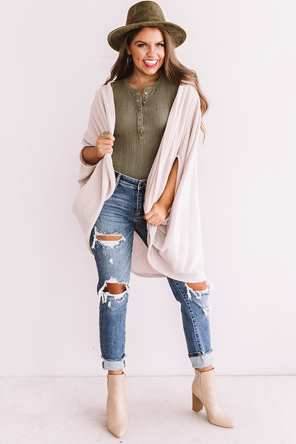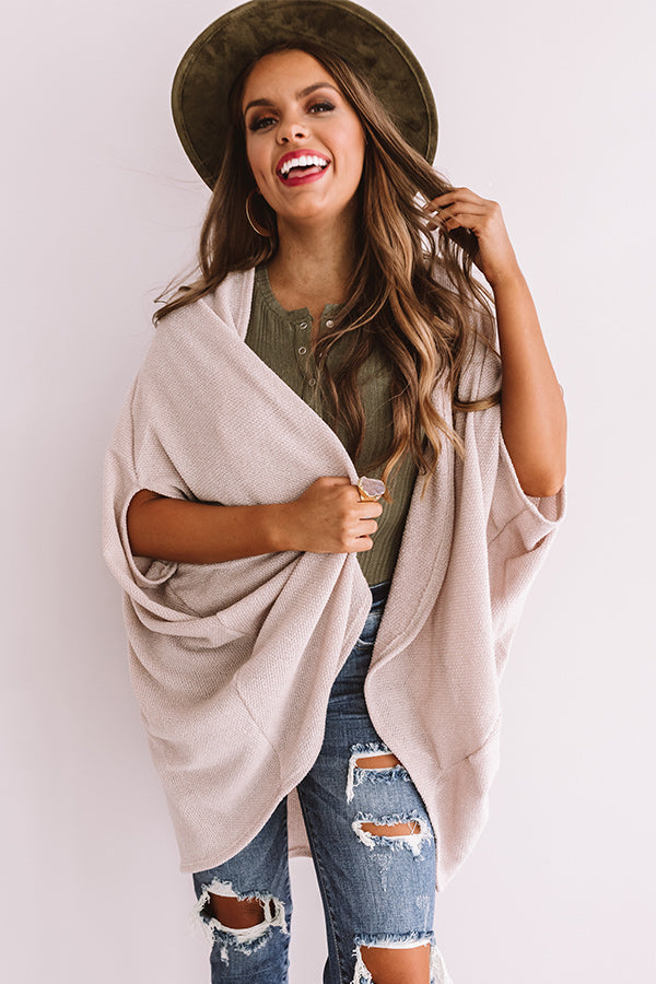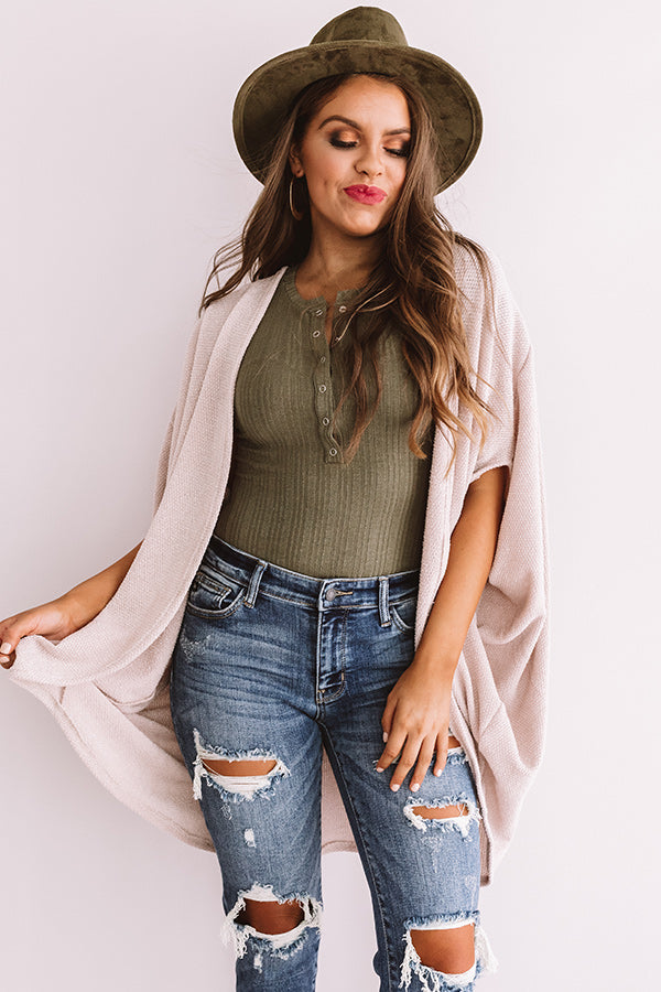The softness of this birch colored cardigan will make you want to "cue the cuddles" with its lightweight tight knit material, loose half-length bat wing sleeves, and ultra slouched open front silhouette that falls into a rounded mid-thigh length back hemline! You can style this versatile piece with just about anything from a basic tank to a sweater, jeans to skirts or dresses, booties to wedges or sandals, clutches to totes, and hats to earrings! Measurements