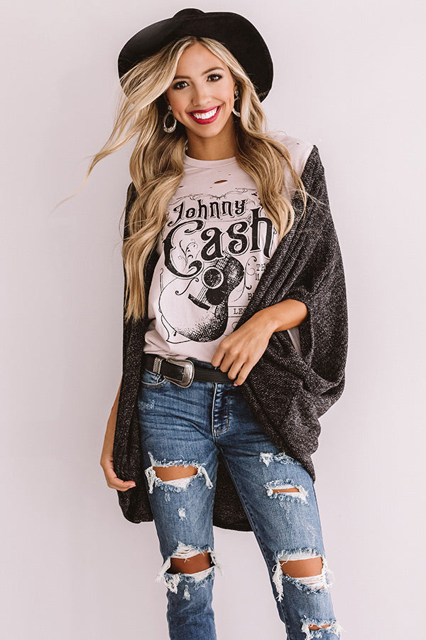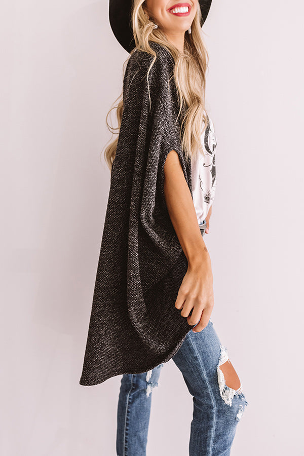 The softness of this little black cardigan will make you want to "cue the cuddles" with its lightweight tight knit material, loose half-length bat wing sleeves, and ultra slouched open front silhouette that falls into a rounded mid-thigh length back hemline! You can style this versatile piece with just about anything from a basic tank to a sweater, jeans to skirts or dresses, booties to wedges or sandals, clutches to totes, and hats to earrings! Measurements