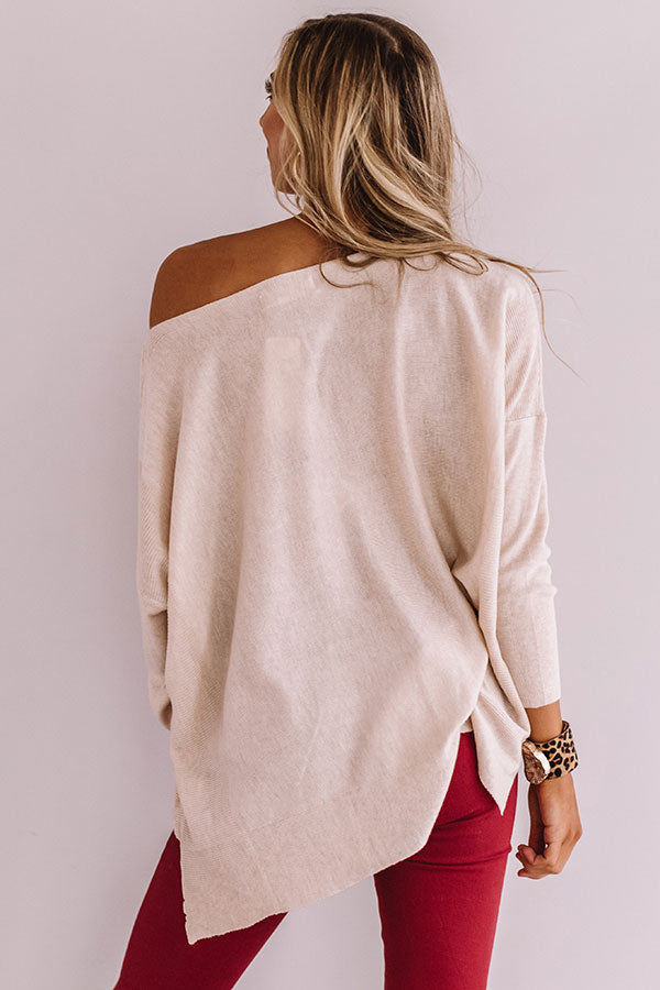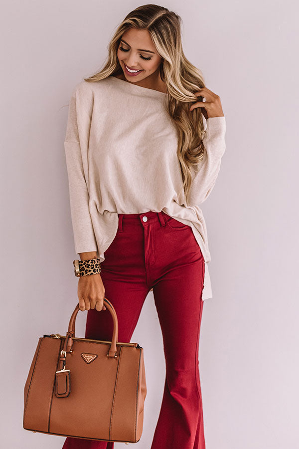 Our birch colored "Cute And Capable Shift Top" is the perfect year round wear anywhere piece with its soft lightweight tight knit material with subtle ribbed texturing, a wide rounded neckline that can be worn off one shoulder, semi-fitted 3/4-length PIKO sleeves, and a relaxed silhouette that falls into a straight high/low tunic length hemline! We have styled this chic piece with some red statement flares, a neutral tote, and leopard booties, but you can also wear it with some distressed ankle skinnies, "The Seraphina Faux Leather Wedge in Taupe," and our "Upstate Adventures Hat in Birch!" Measurements