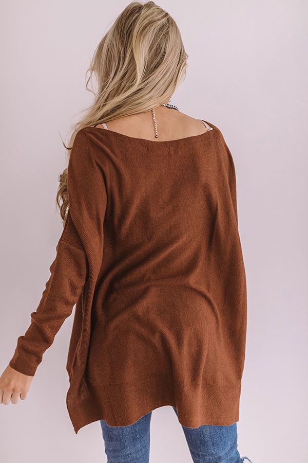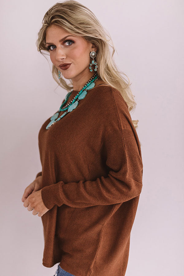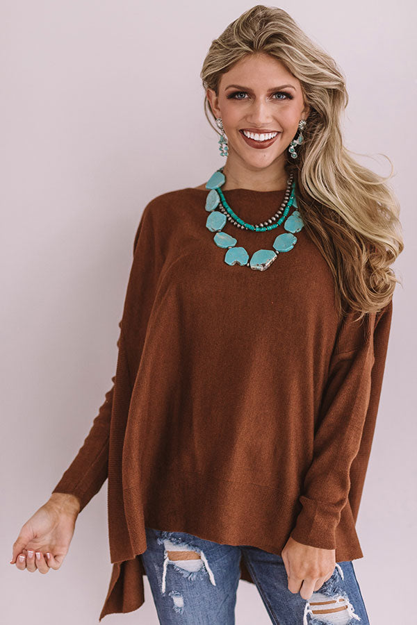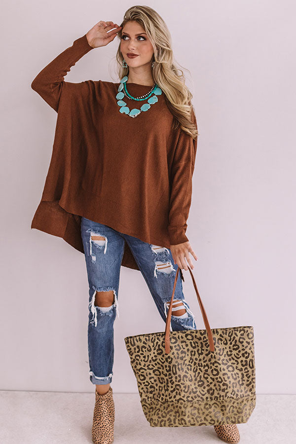 Our brown "Cute And Capable Shift Top" is the perfect year round wear anywhere piece with its soft lightweight tight knit material with subtle ribbed texturing, a wide rounded neckline that can be worn off one shoulder, semi-fitted 3/4-length PIKO sleeves, and a relaxed silhouette that falls into a straight high/low tunic length hemline! We have styled this adorable transitional piece with some distressed ankle skinnies and a leopard bootie and tote, but you can also wear it with our "Name Dropper Faux Suede Skirt in Mocha," our "Plans In Paris Wool Hat in Taupe," and "The Seraphina Faux Leather Wedge in Taupe!" Measurements