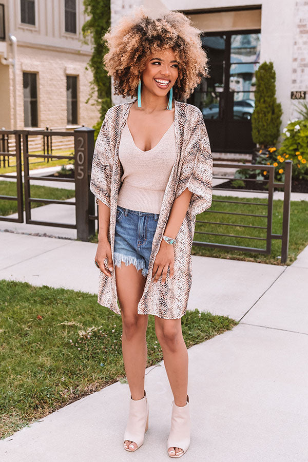 Compose the perfect OOTD with this chic neutral tank featuring soft lightweight tight knit material, a scooped v-cut neckline and back, spaghetti straps, and a figure flattering silhouette that falls into a straight hemline with wide ribbed texturing! We have layered this upscale basic under a snake print overlay with some denim shorts and matching wedged peep toe booties, but you can also wear it with some white flares, our "So Relatable Heel in Birch," and our "A Moment's Notice Crossbody in Brown!"