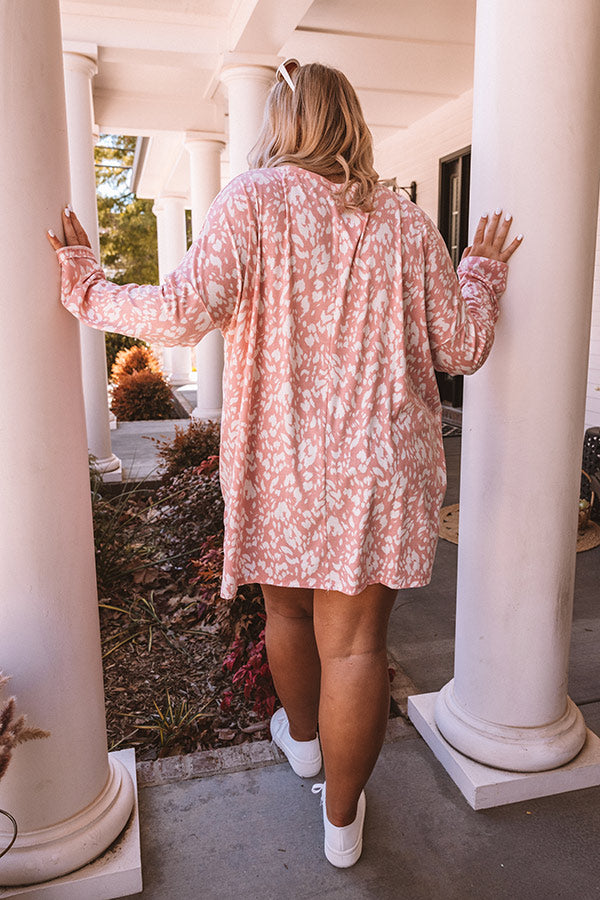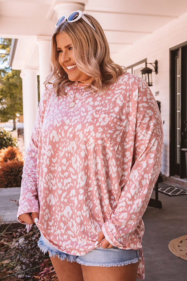Plus Size - Feel cute in this adorable pink shift top featuring soft lightweight material patterned with a unique white spotted print, a high rounded neckline, long loose sleeves, and a slouched silhouette that ends in a straight hemline with accent side slits! Measurements
