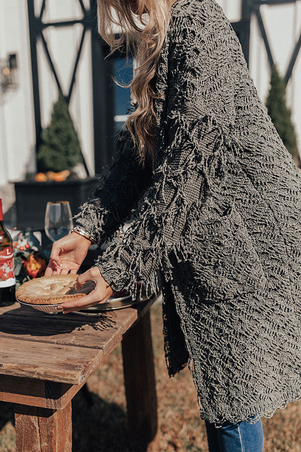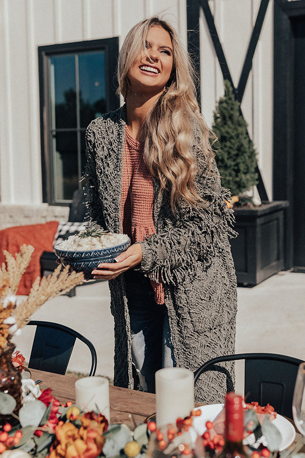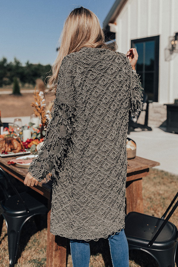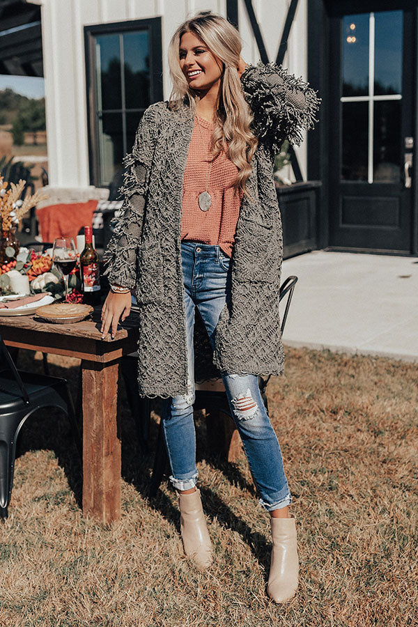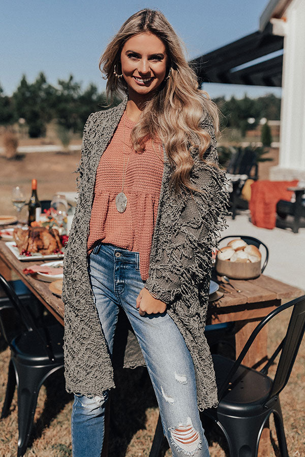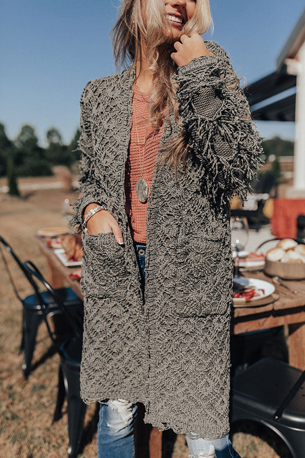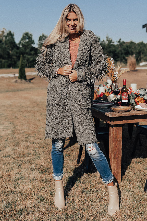 You will want to wear this cute sage colored cardigan on repeat with its soft lightweight loose knit material with diamond texturing, long oversized sleeves with shaggy fringe detailing, accent side pockets, and a relaxed open front silhouette that falls into a straight knee-length hemline! You can style this versatile piece with just about anything from a basic tank to a sweater, jeans to skirts or dresses, booties to wedges or sandals, clutches to totes, and hats to earrings! Measurements