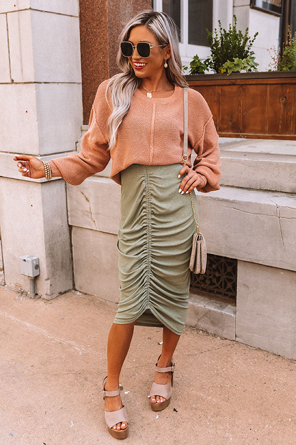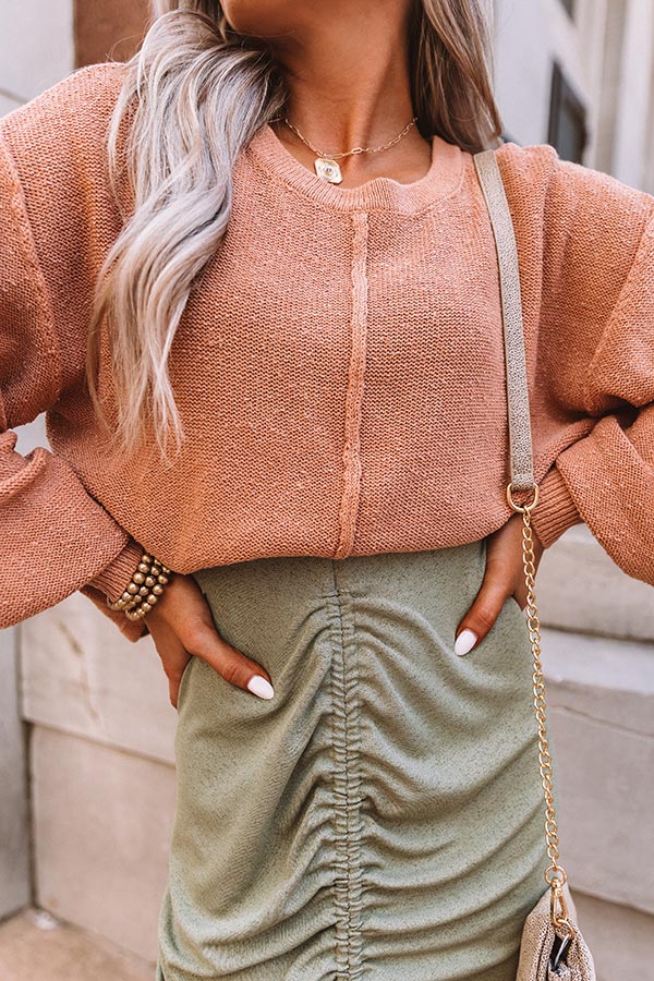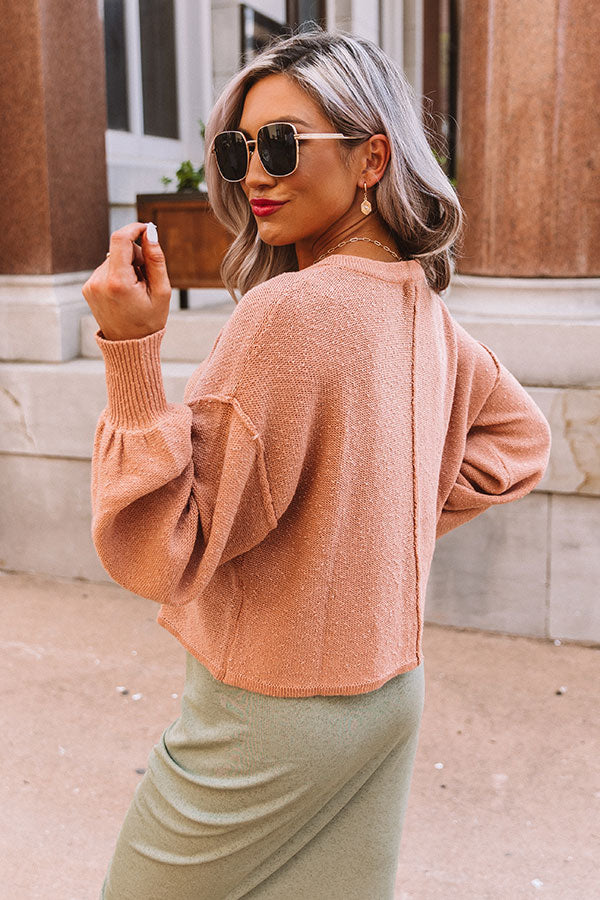It's cute to be cool, so chill out in our adorable light rust hued top featuring soft lightweight tight knit material, a rounded neckline, long bubble sleeves with fitted cuffs, and a slouched silhouette that ends in a straight hemline!
