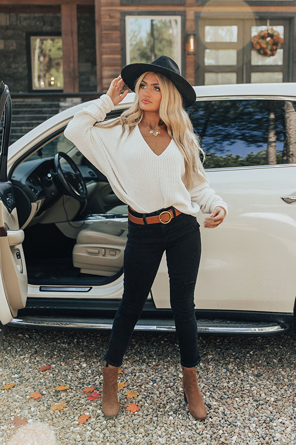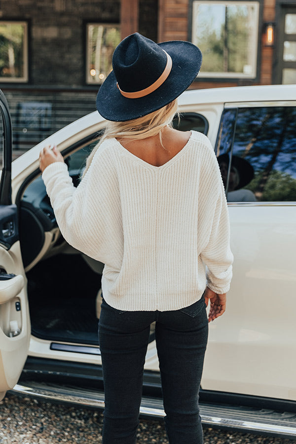 You will look cuter than ever in this charming white sweater featuring soft and warm chenille material, a v-cut neckline and upper back, long loose sleeves, and a slouched silhouette that falls into a straight hemline! Measurements
