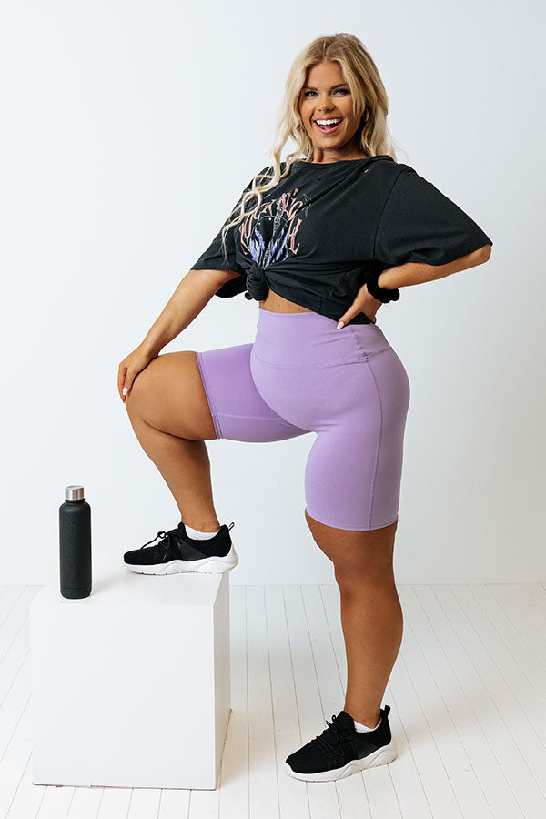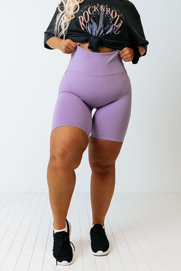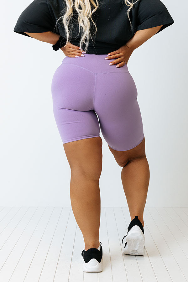 We have no doubt you will want to wear these on trend lavender colored bike shorts on a daily basis with their lightweight four-way stretch material, high waistline for tummy control, and a flattering figure hugging silhouette that ends in straight mid-thigh length hemlines! on products