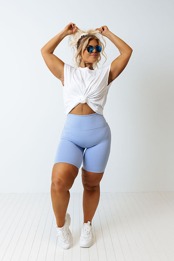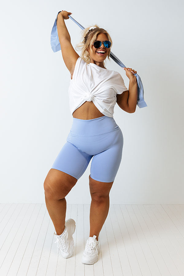 We have no doubt you will want to wear these on trend sky blue plus size bike shorts on a daily basis with their lightweight four-way stretch material, high waistline for tummy control, and a flattering figure hugging silhouette that ends in straight mid-thigh length hemlines! on products