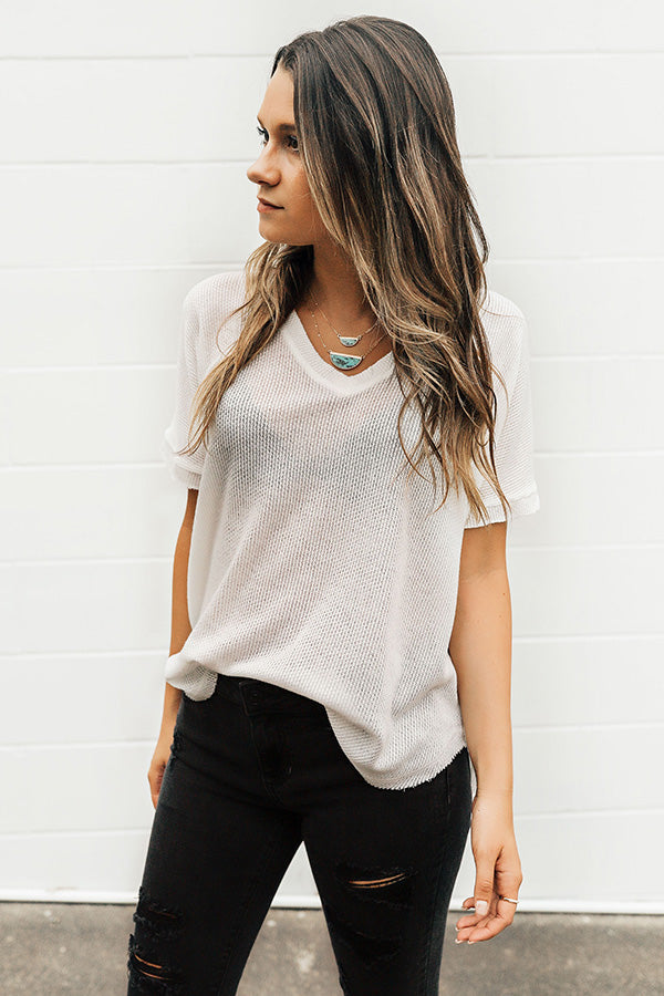 Hustle & heart will set you apart! Hustle hard girl, in the "Haute Hustle Shift Tee." This stylishly simple tee has a v-cut neckline, short sleeves & a lightweight knit bodice that is easy to throw on, & go! Style with your favorite distressed denim for a basic everyday look that you will wear time & time again.