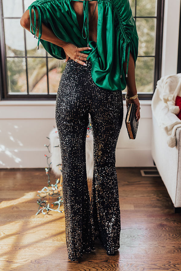 Dainty Glam Sequin High Waist Flare In 2-Tone