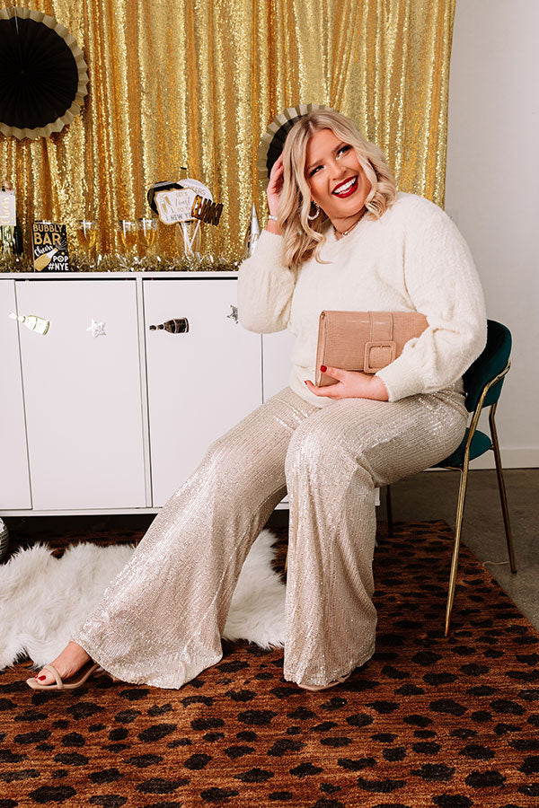 Dainty Glam Sequin High Waist Flare In Champagne Curves