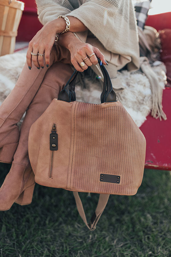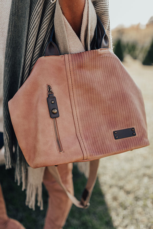 You are sure to be a dapper darling when you accessorize with this stunning tan tote featuring sleek faux leather material, an accent front and back zip, two tote handles, an adjustable and removable crossbody strap, and a spacious lightweight fully lined pouch with additional inside pockets and a zip closure! PLUS, it includes a matching wallet!