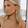 - Faux pearl and rhinestone studs with a dangling faux pearl and rhinestone chandelier design