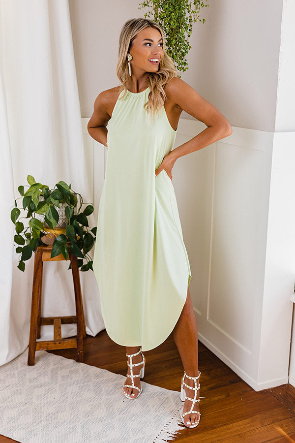 Spend your day in the sun in style with this chic lime punch colored midi dress featuring soft lightweight material, a rounded neckline with a sleeveless silhouette, a keyhole accented upper back with a button closure, and a relaxed silhouette that falls into a rounded mid-calf length hemline! on products