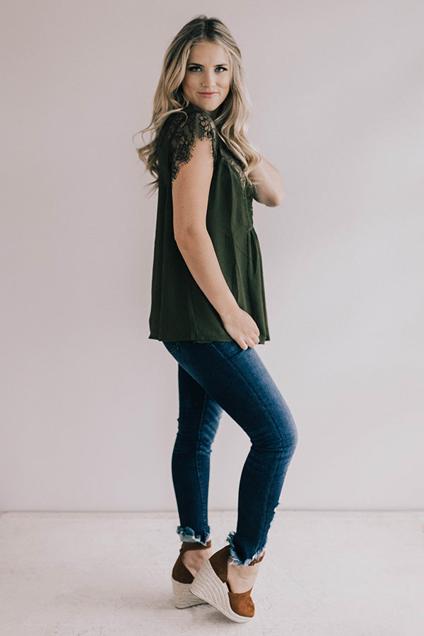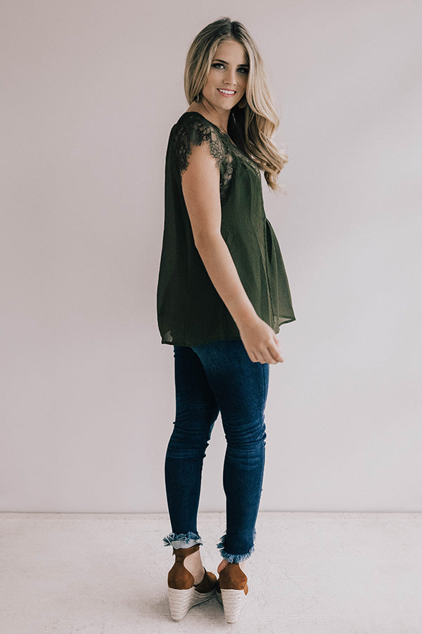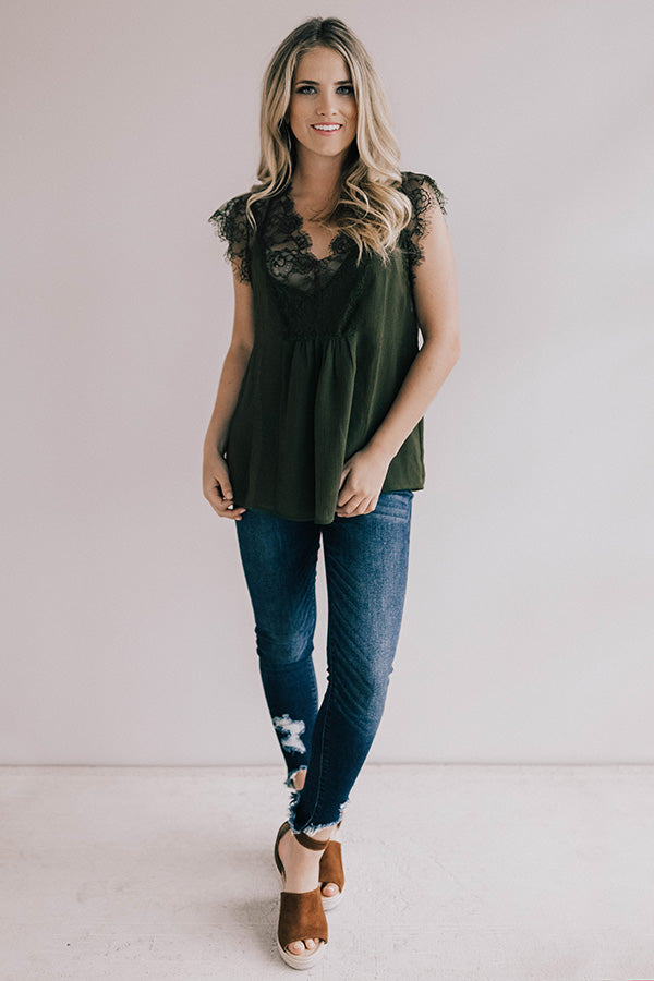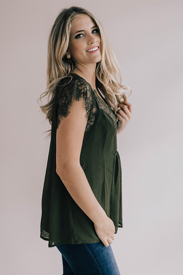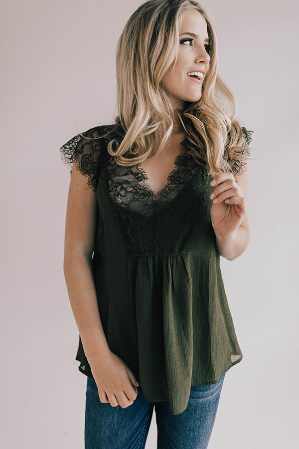 Daytime Romance Lace Top In Army Green