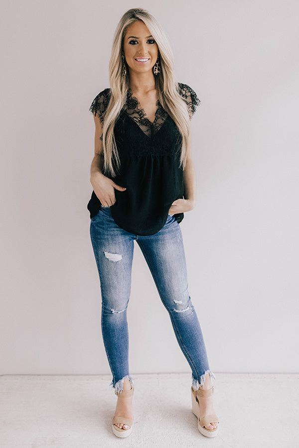 Daytime Romance Lace Top In Black